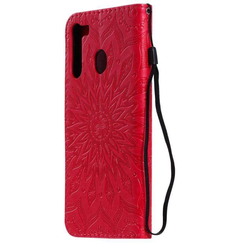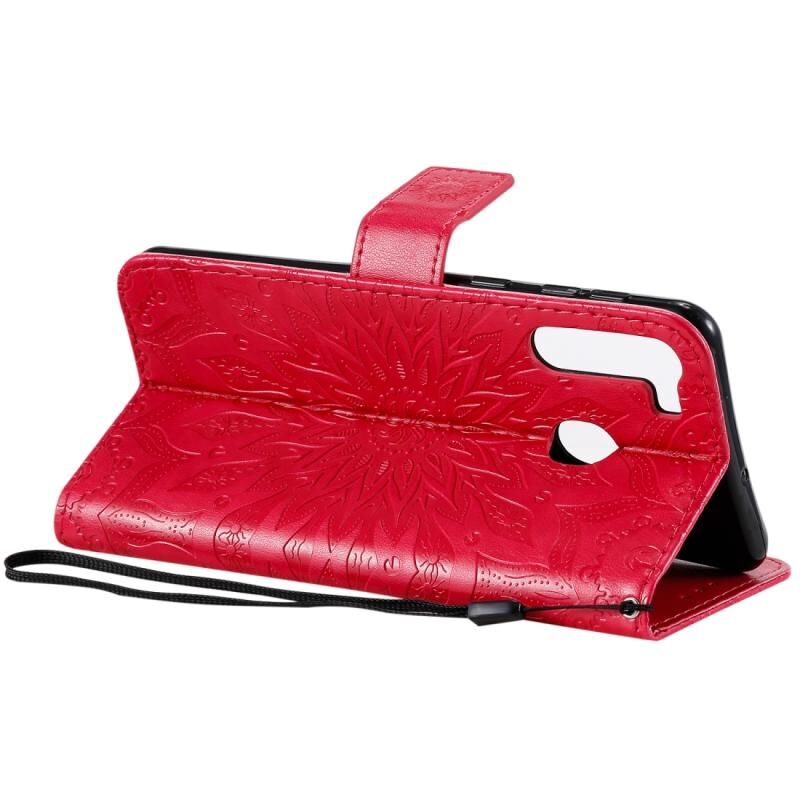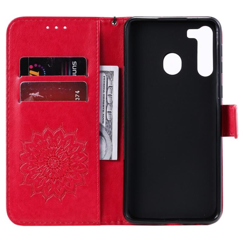 Θήκη για Galaxy A21, με εκτύπωση ηλιοτροπίου, οριζόντια, από δερματίνη PU με βάση στήριξης, θήκες για κάρτες, πορτοφόλι & λουρί (Κόκκινη)