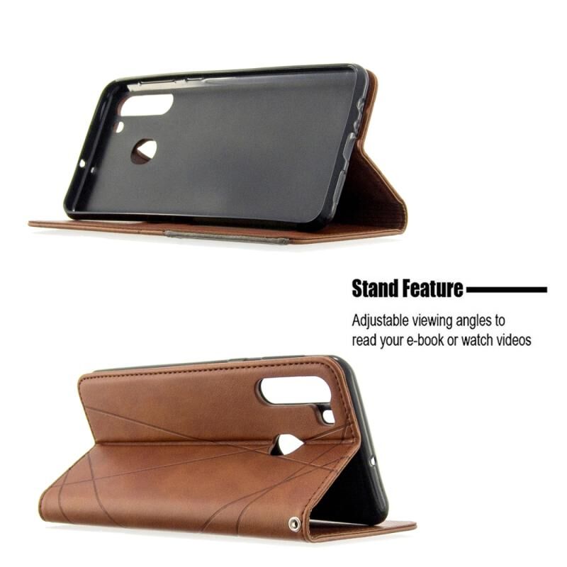 Για Galaxy A21 Rhombus υφή οριζόντια Flip μαγνητική δερμάτινη θήκη με κάτοχο & υποδοχές για κάρτες & πορτοφόλι (καφέ)