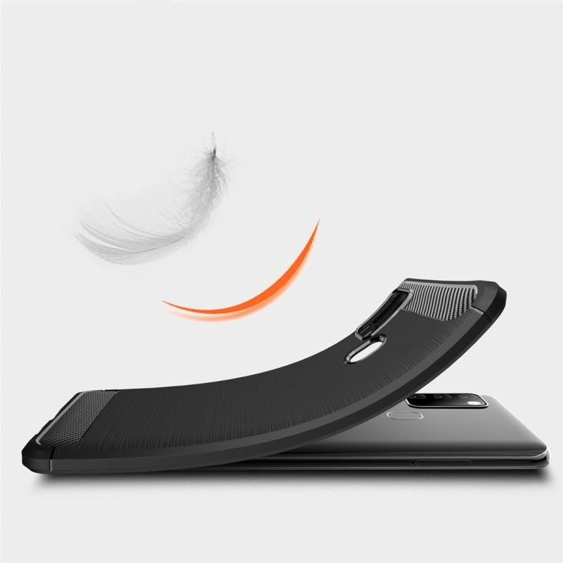 Θήκη για Galaxy A21s από TPU με υφή βουρτσισμένου ανθρακονήματος (Κόκκινο)