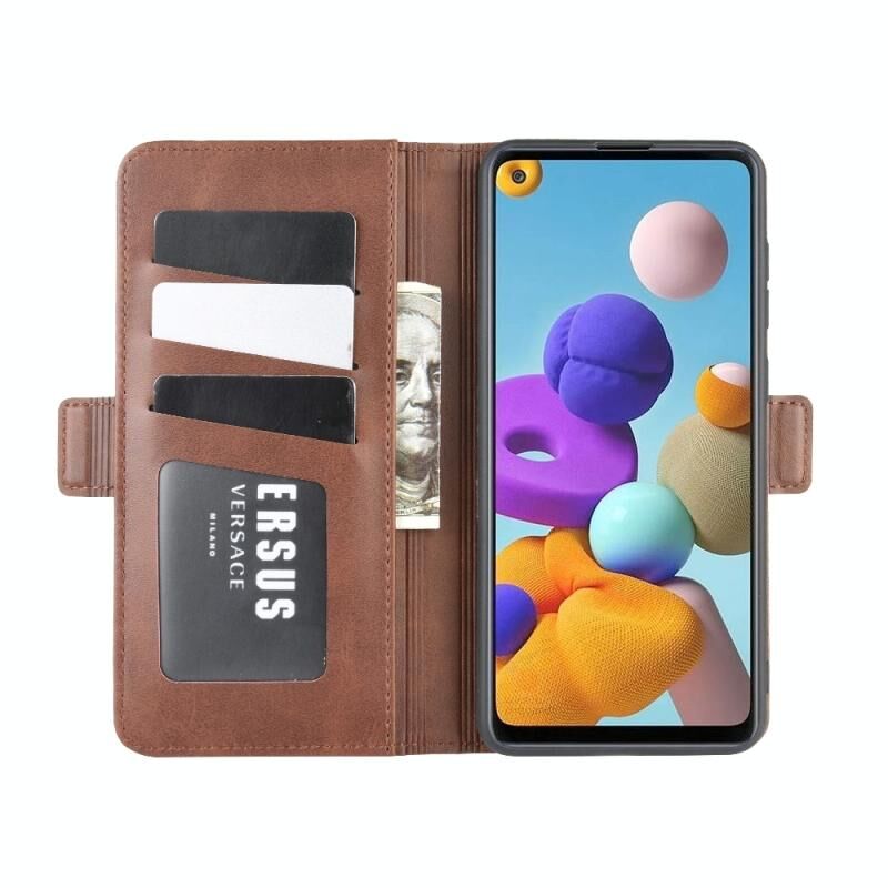 For Galaxy A21S Dual-side Magnetic Buckle Horizontal Flip Leather Case with Holder & Card Slots & Wallet(Brown)