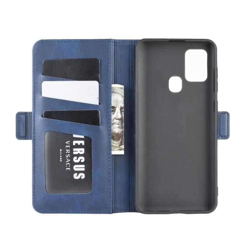 For Galaxy A21S Dual-side Magnetic Buckle Horizontal Flip Leather Case with Holder & Card Slots & Wallet(Dark Blue)