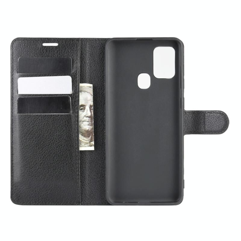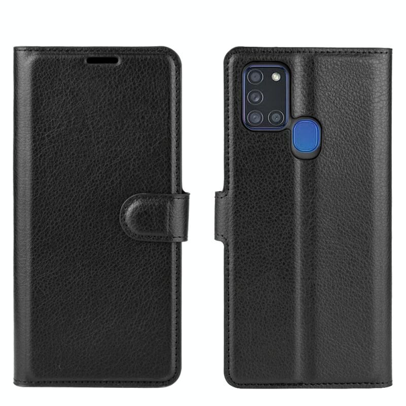 Για Galaxy A21S Litchi Υφή Οριζόντια Flip προστατευτική θήκη με θήκη & υποδοχές για κάρτες & πορτοφόλι (Μαύρο)