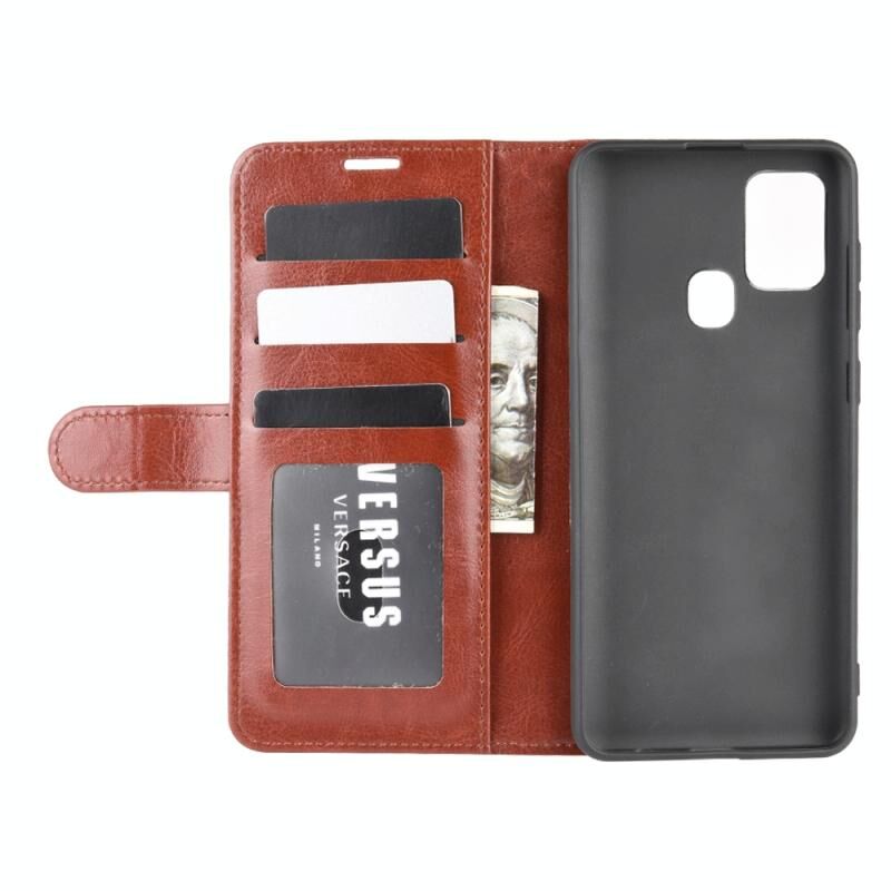 Για Galaxy A21s R64 Υφή ενιαία οριζόντια Flip προστατευτική θήκη με υποδοχές για κάρτες & θήκες & πορτοφόλι & πλαίσιο φωτογραφιών (καφέ)