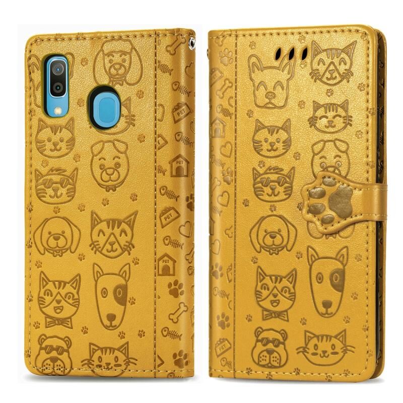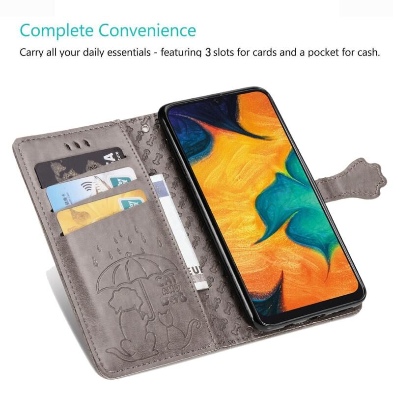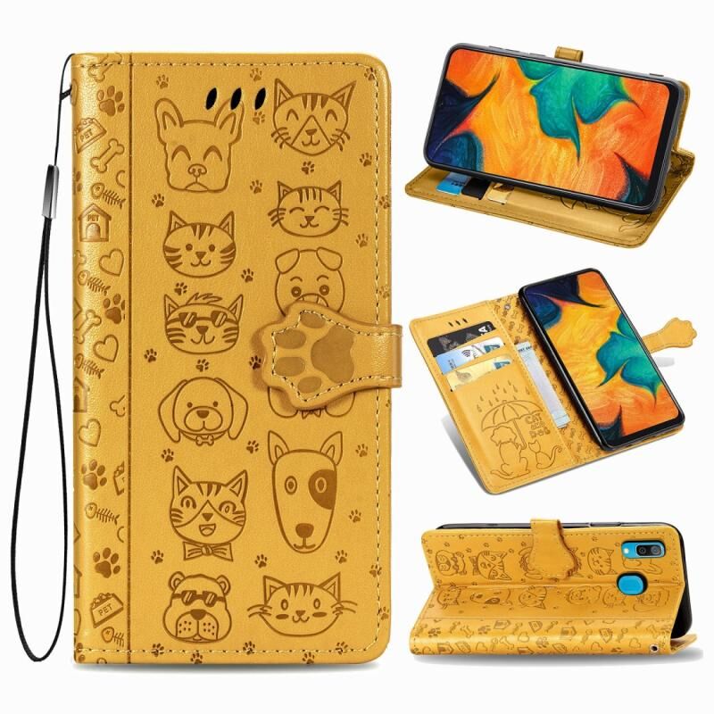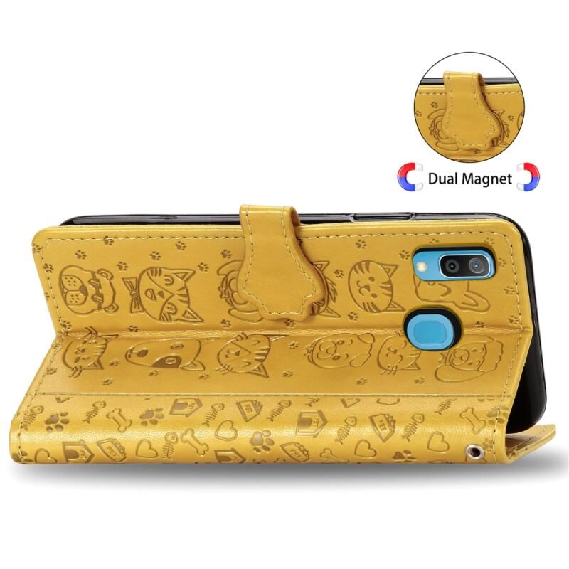 Θήκη δέρματος οριζόντιας αναδίπλωσης με ανάγλυφα σχέδια χαριτωμένων γάτας και σκύλου για Galaxy A30, με βάση στήριξης / υποδοχή κάρτας / πορτοφόλι / κορδόνι (Ροζ)