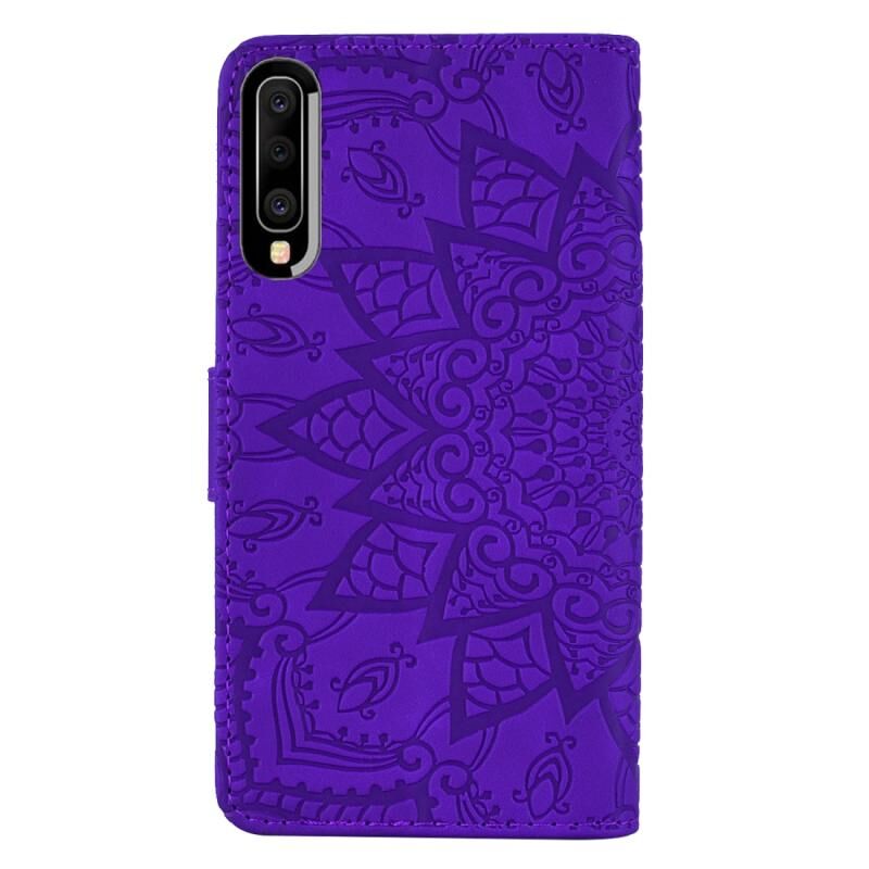 Για Galaxy A30s / A50s μοσχάρι μοτίβο Mandala διπλή αναδιπλούμενη σχεδίαση ανάγλυφη δερμάτινη θήκη με πορτοφόλι & θήκη & υποδοχές για κάρτες (μωβ)