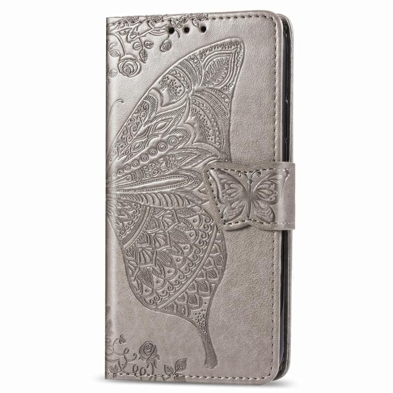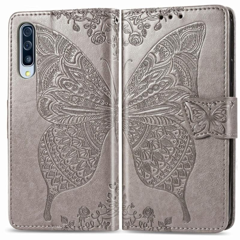 Θήκη βιβλίου από δέρμα με οριζόντιο άνοιγμα για Galaxy A30S με ανάγλυφο σχέδιο πεταλούδας και λουλουδιών, με βάση στήριξης / υποδοχή κάρτας / πορτοφόλι / κορδόνι (Γκρι)