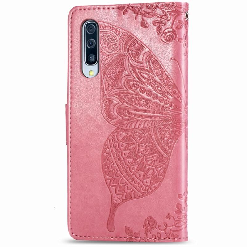 Θήκη βιβλίου από δέρμα με οριζόντιο άνοιγμα για Galaxy A30S με ανάγλυφο σχέδιο πεταλούδας και λουλουδιών, με βάση στήριξης / υποδοχή κάρτας / πορτοφόλι / κορδόνι (Ανοιχτό Μωβ)