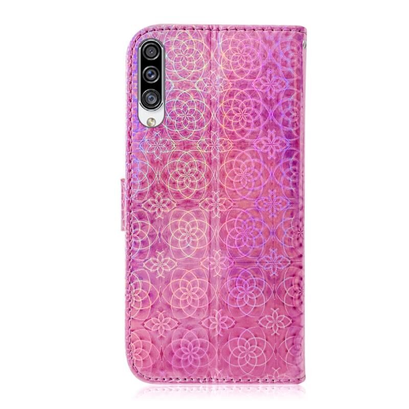For Galaxy A30s Solid Color Colorful Magnetic Buckle Horizontal Flip PU Leather Case with Holder & Card Slots & Wallet & Lanyard(Pink)