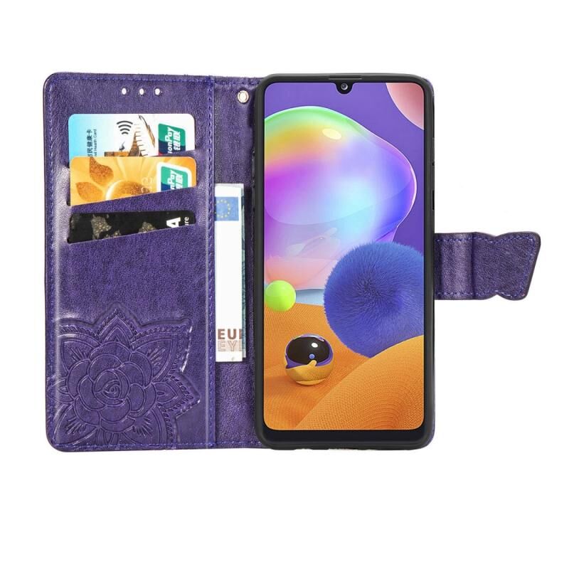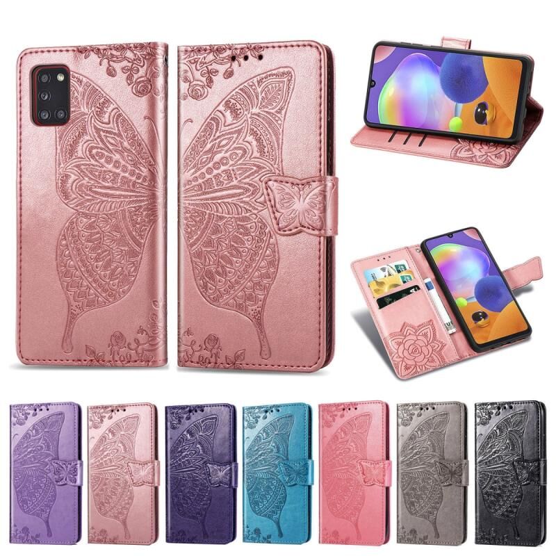 Θήκη βιβλίου από δέρμα με οριζόντιο άνοιγμα για Galaxy A31 με ανάγλυφο σχέδιο πεταλούδας και λουλουδιών, με βάση στήριξης / υποδοχή κάρτας / πορτοφόλι / κορδόνι (Γκρι)