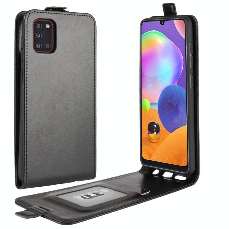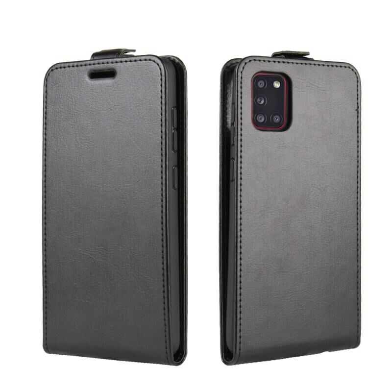 Για Galaxy A31 R64 Υφή Single κάθετη Flip δέρμα προστατευτική θήκη με υποδοχές για κάρτες & πλαίσιο φωτογραφιών (μαύρο)