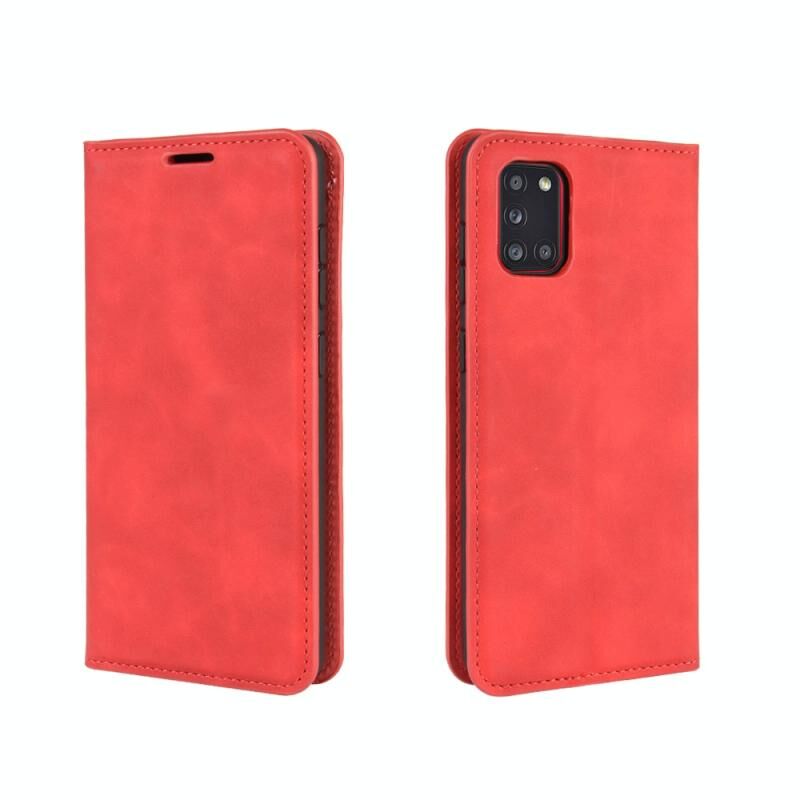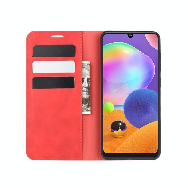 Για Galaxy A31 Retro-skin Business Μαγνητική δερμάτινη θήκη αναρρόφησης με θήκη για κάρτες & υποδοχές & πορτοφόλι (κόκκινο)