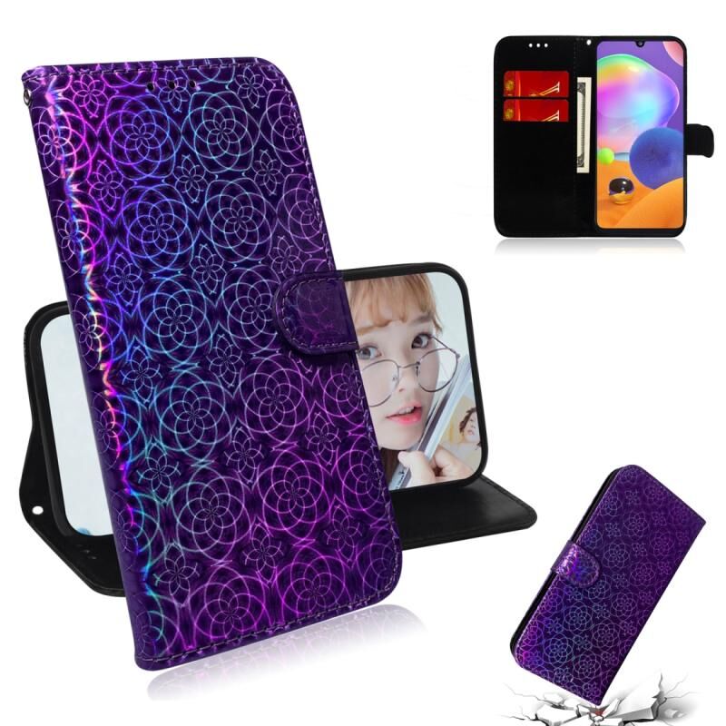 Για Galaxy A31 Αμιγές χρώμα πολύχρωμο μαγνητικό πόρπη οριζόντια Flip PU δέρμα υπόθεση με κάτοχο & υποδοχές για κάρτες & πορτοφόλι & κορδόνι (μωβ)