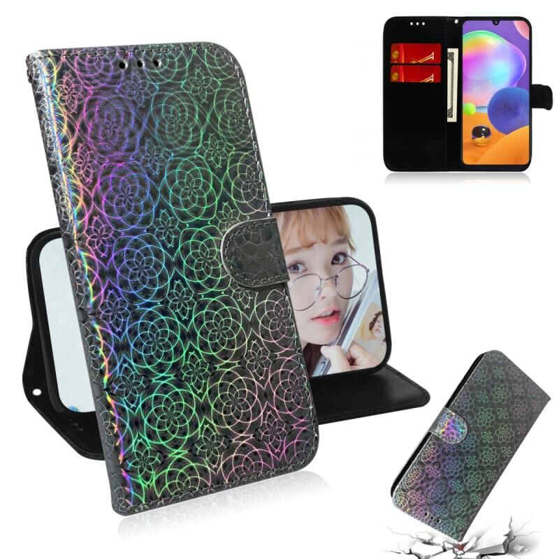 Για Galaxy A31 Αμιγές χρώμα πολύχρωμο μαγνητικό πόρπη οριζόντια Flip PU δέρμα υπόθεση με κάτοχο & υποδοχές για κάρτες & πορτοφόλι & Lanyard (ασημί)