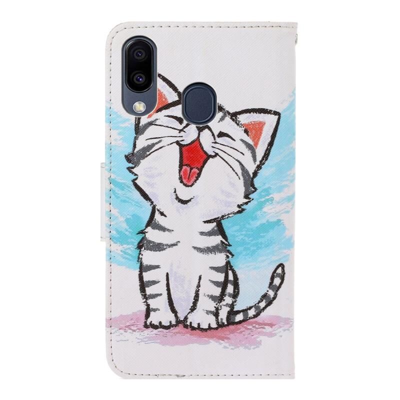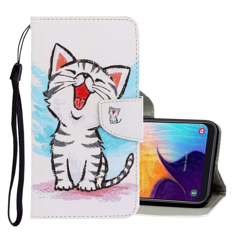 Θήκη για Galaxy A40 3D με έγχρωμο σχέδιο, οριζόντια αναδιπλούμενη από δερματίνη PU με βάση στήριξης & θήκες για κάρτες & πορτοφόλι (Κόκκινο Στόμα Γάτας)