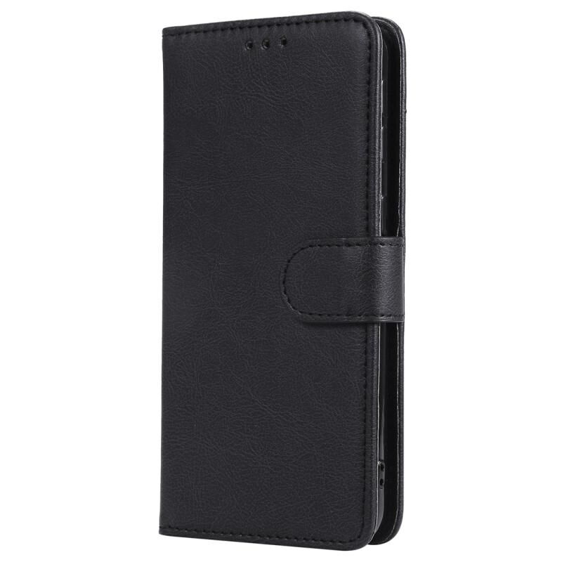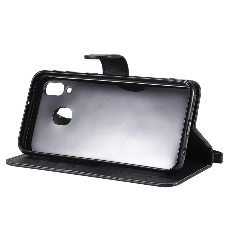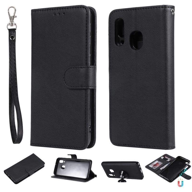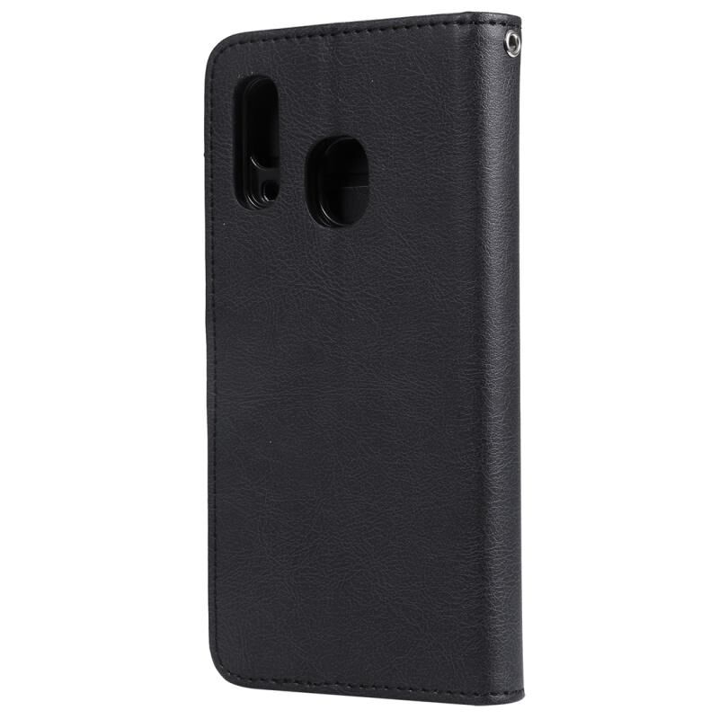 Για Galaxy A40 Αμιγές χρώμα οριζόντια Flip προστατευτική θήκη με θήκη & υποδοχές για κάρτες & πορτοφόλι & πλαίσιο φωτογραφιών & κορδόνι (μαύρο)