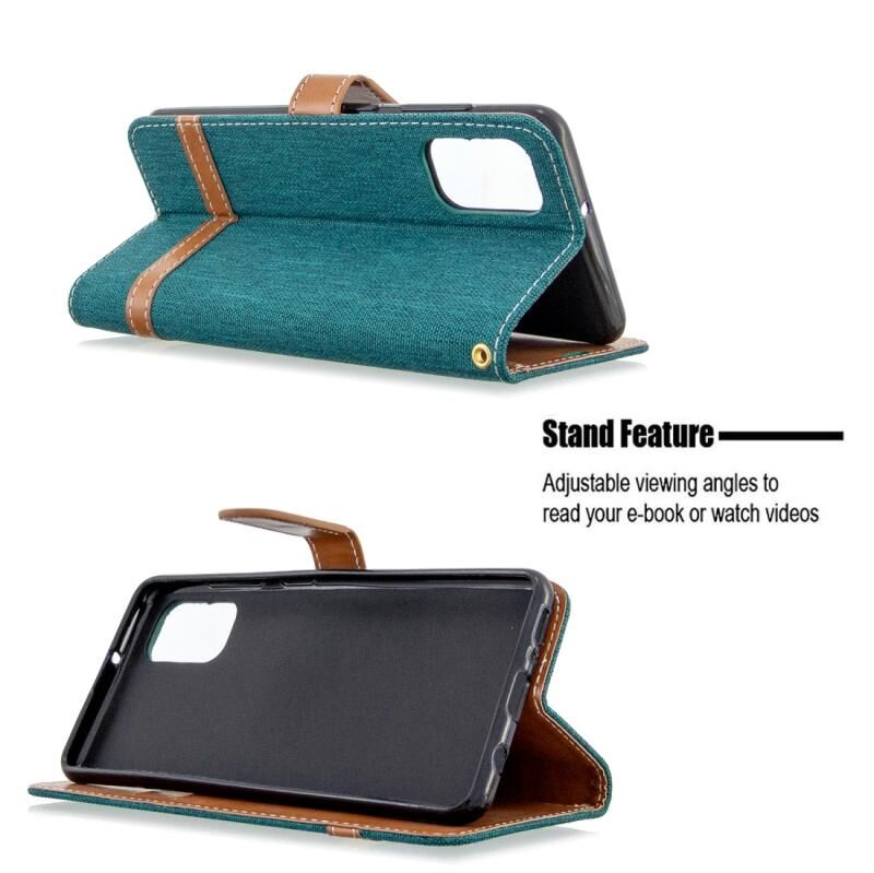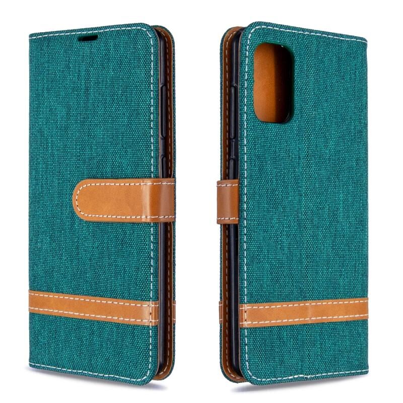 Για το Galaxy A41 Χρώμα ταιριάζει με Denim υφή οριζόντια Flip δερμάτινη θήκη με θήκη & υποδοχές για κάρτες & πορτοφόλι & κορδόνι (πράσινο)