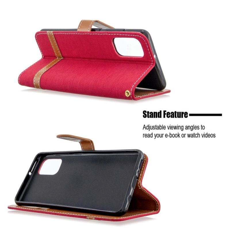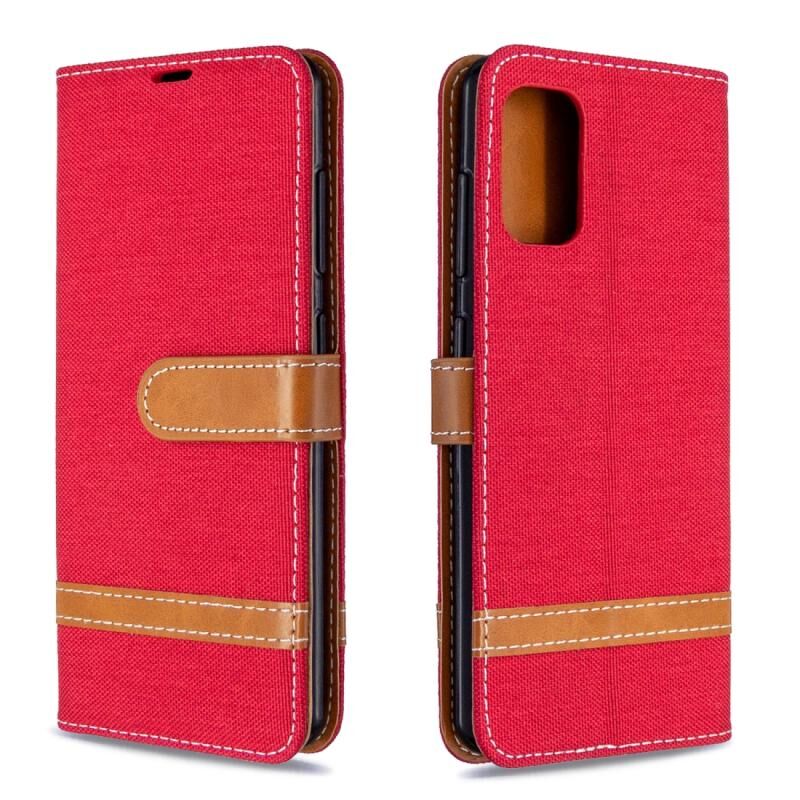 Για το Galaxy A41 Χρώμα ταιριάζει με Denim υφή οριζόντια Flip δερμάτινη θήκη με θήκη & υποδοχές για κάρτες & πορτοφόλι & κορδόνι (κόκκινο)