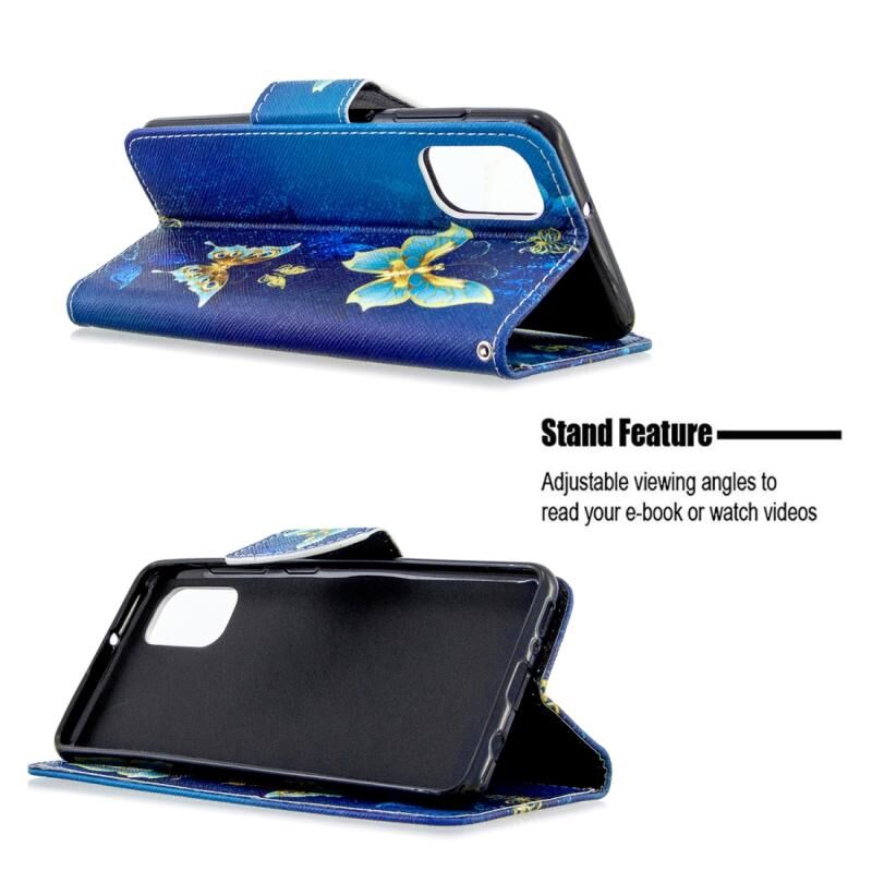 Θήκη δέρματος οριζόντιας αναδίπλωσης για Galaxy A41 με σχέδιο έγχρωμου σχεδίου, βάση στήριξης & υποδοχές καρτών & πορτοφόλι (Χρυσή Πεταλούδα)