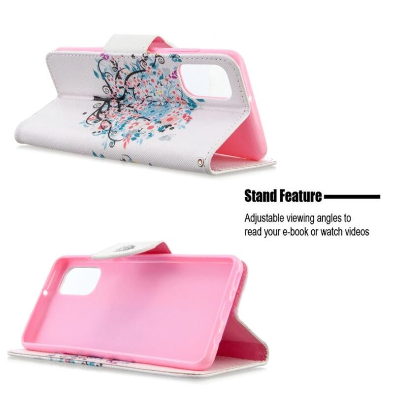 Θήκη δέρματος οριζόντιας αναδίπλωσης με σχέδιο πολύχρωμης ζωγραφικής για Galaxy A41 με βάση & υποδοχές καρτών & πορτοφόλι (Κόκκινο)
