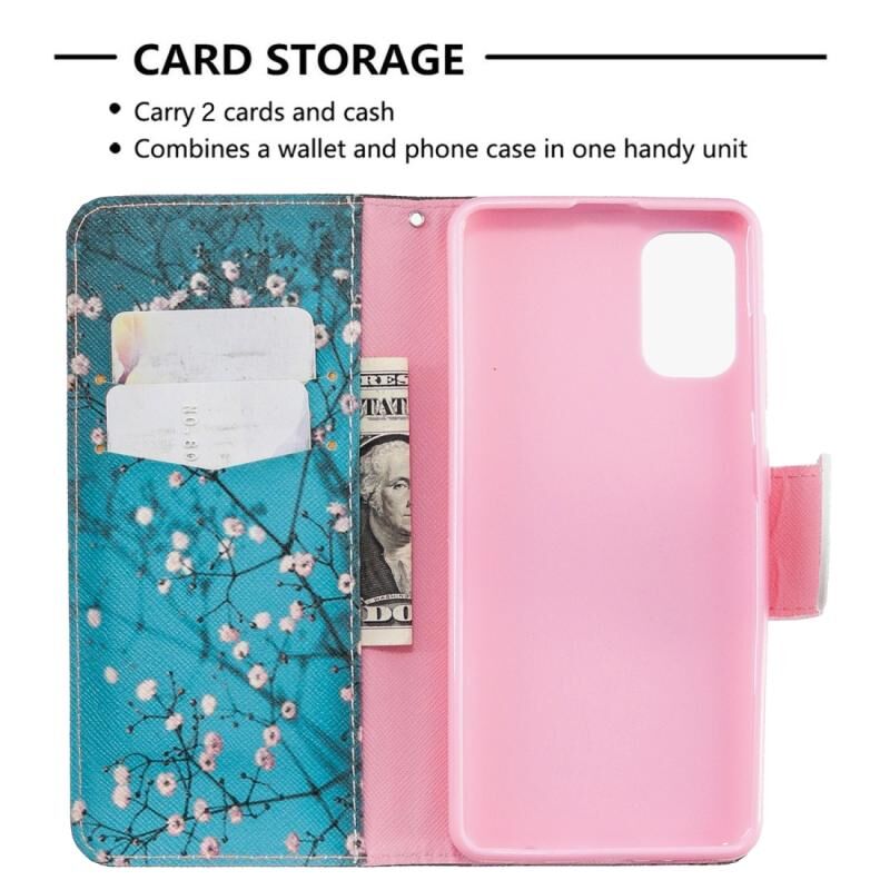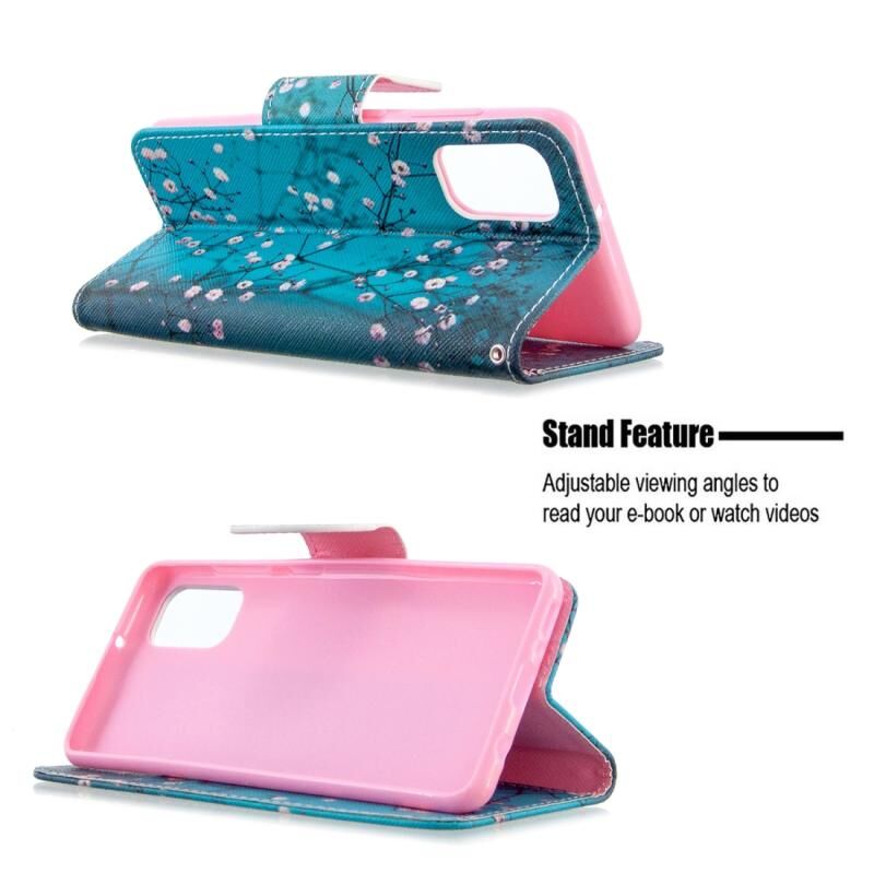 Θήκη δέρματος οριζόντιας αναδίπλωσης με σχέδιο πολύχρωμου σχεδίου για Galaxy A41 με βάση & υποδοχές καρτών & πορτοφόλι (Λουλούδι Δαμασκηνιάς)