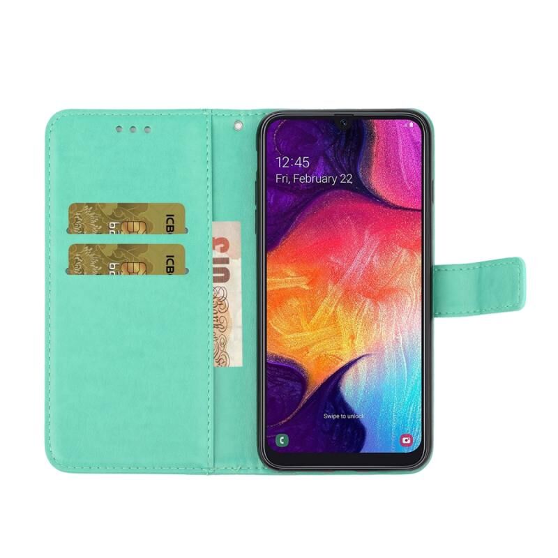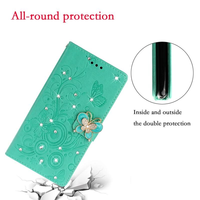 Θήκη δέρματος με ανάγλυφο σχέδιο πεταλούδας με στρασάκια για Galaxy A41, οριζόντια, με θήκη για κάρτες, πορτοφόλι και στήριξη (πράσινο)