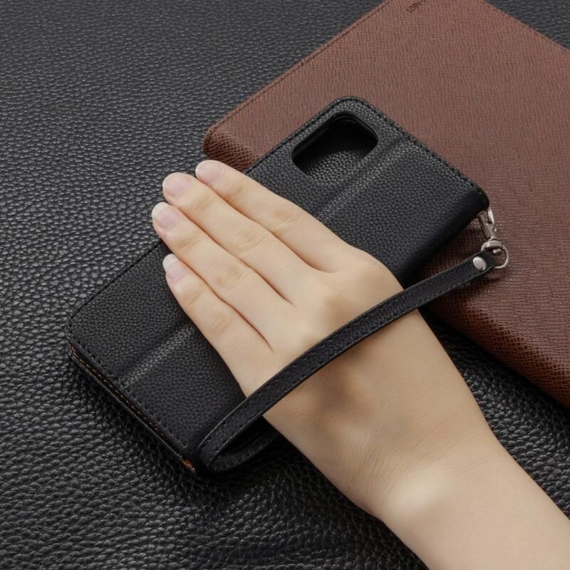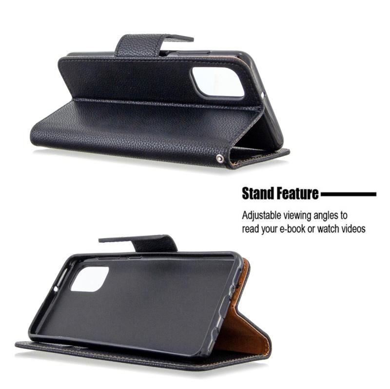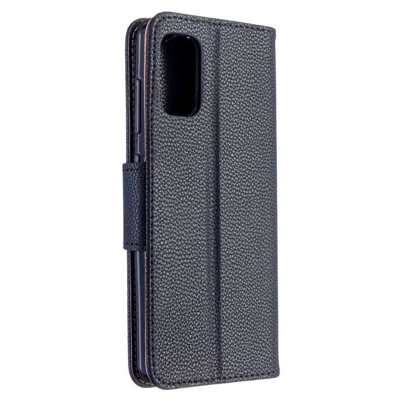 Για Galaxy A41 Καθαρό χρώμα οριζόντια Flip PU δερμάτινη θήκη με θήκη για κάρτες & υποδοχές & πορτοφόλι & κορδόνι (Μαύρο)