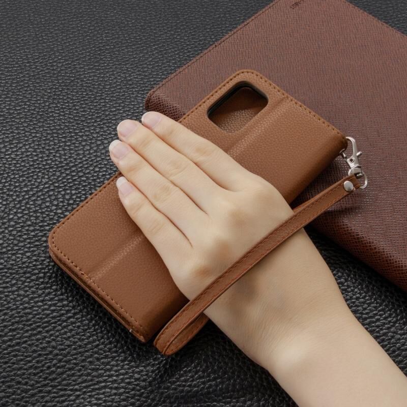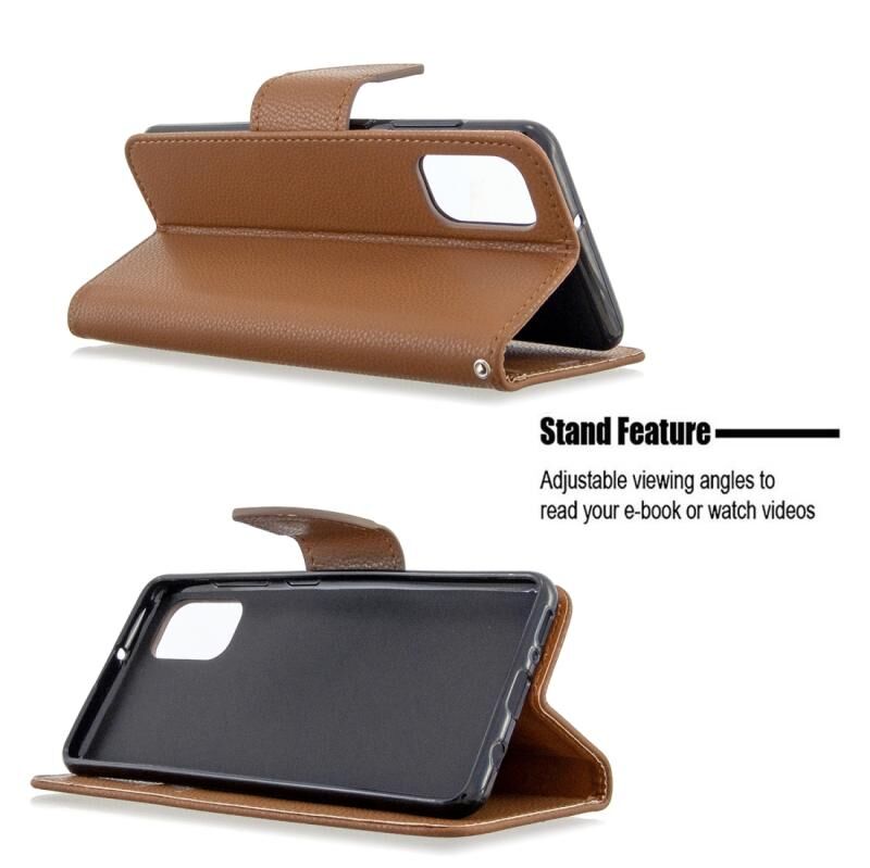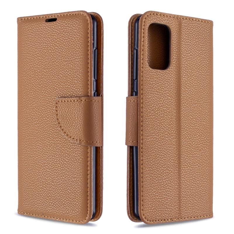 Για Galaxy A41 Καθαρό χρώμα οριζόντια Flip PU δερμάτινη θήκη με θήκη για κάρτες & υποδοχές & πορτοφόλι & κορδόνι (Καφέ)