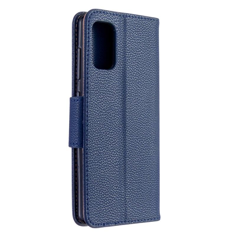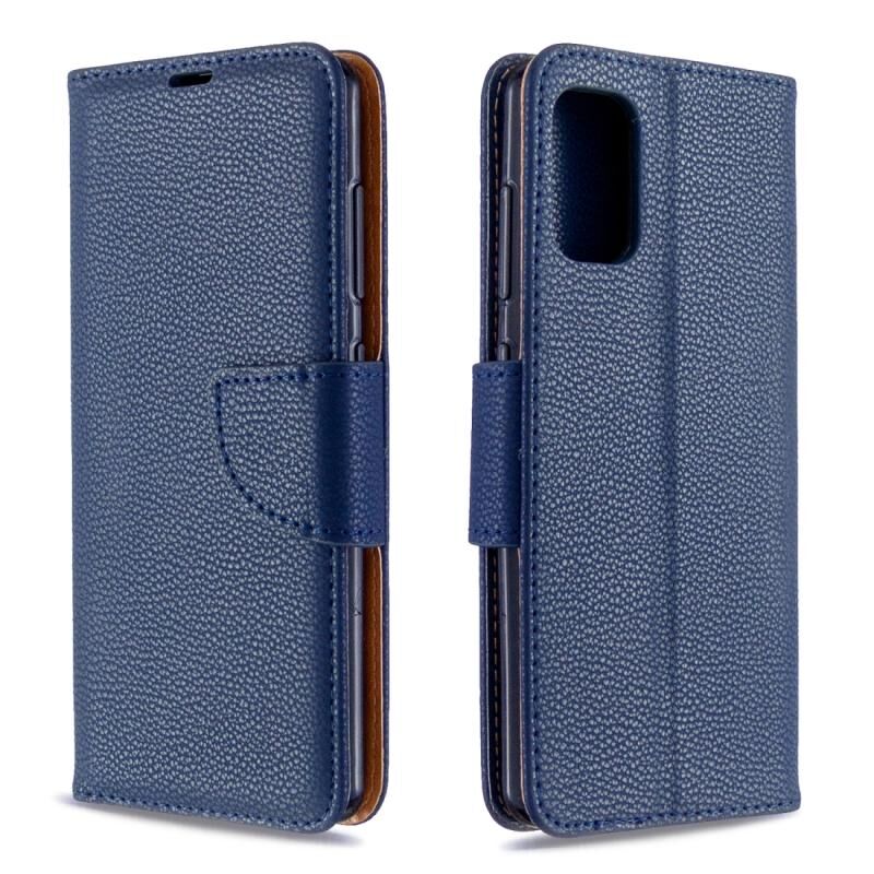 Για Galaxy A41 Καθαρό χρώμα οριζόντια Flip PU δερμάτινη θήκη με θήκη για κάρτες & υποδοχές & πορτοφόλι & κορδόνι (σκούρο μπλε)