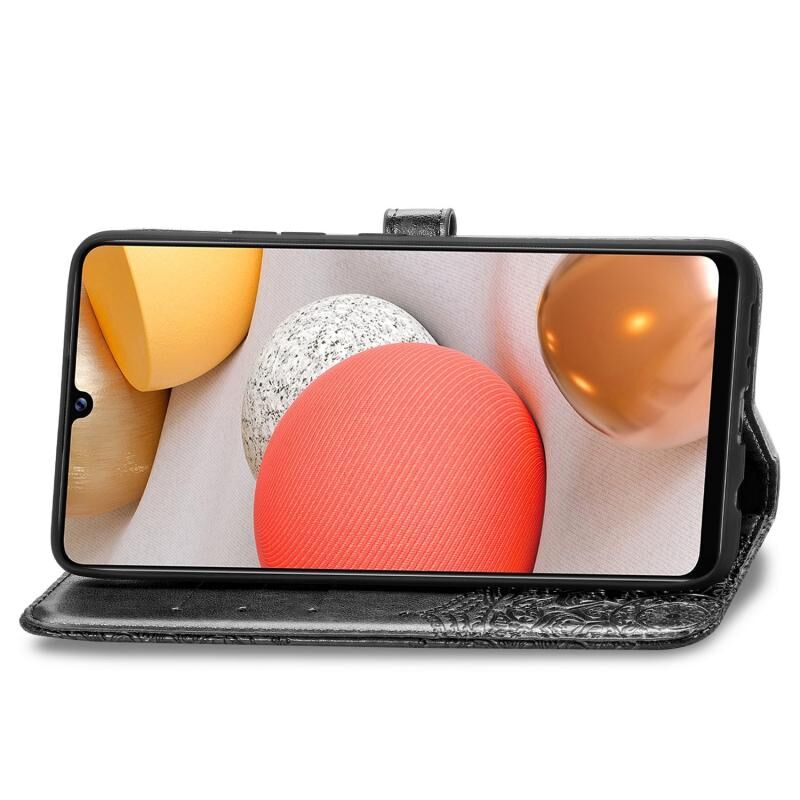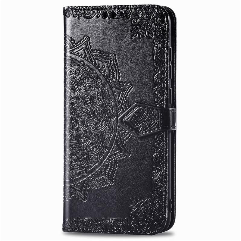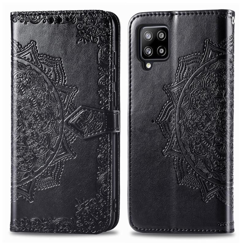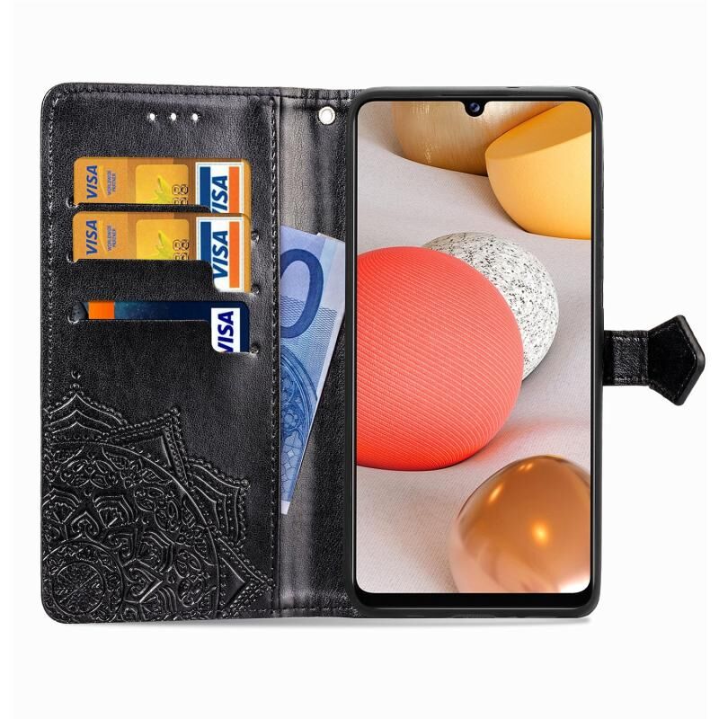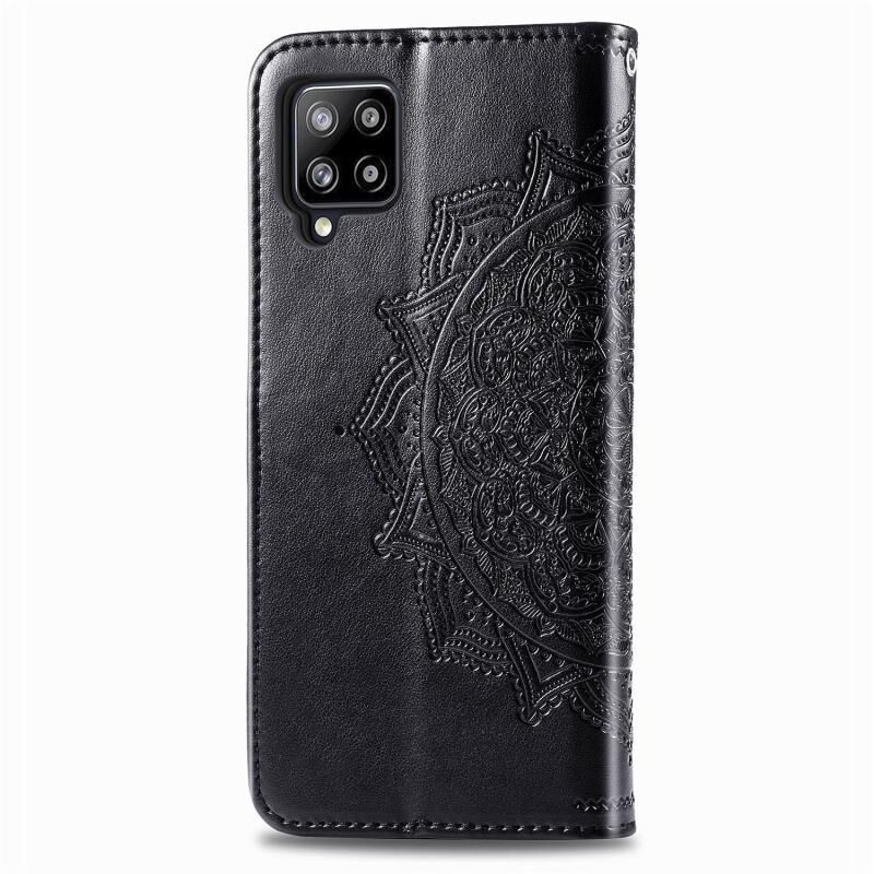 Θήκη βιβρίου από δέρμα με οριζόντιο άνοιγμα για Galaxy A42 5G, με ανάγλυφο σχέδιο Mandala, βάση στήριξης / υποδοχή κάρτας / πορτοφόλι / κορδόνι (Μαύρο)