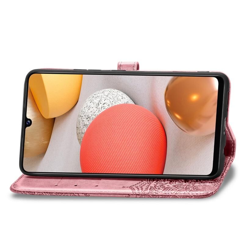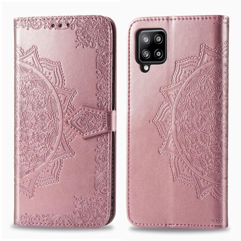Θήκη βιβρίου από δέρμα με οριζόντιο άνοιγμα για Galaxy A42 5G, με ανάγλυφο σχέδιο Mandala, βάση στήριξης / υποδοχή κάρτας / πορτοφόλι / κορδόνι (Χρυσό Ρόδι)