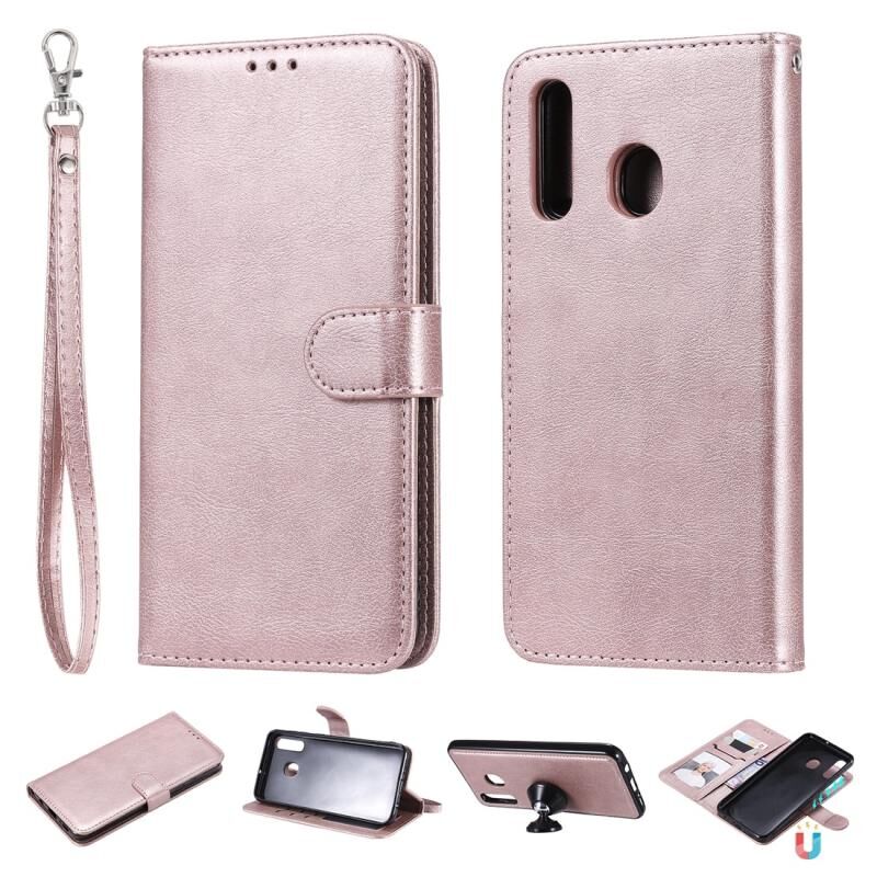 Για Galaxy A50 / A30 / A20 Αμιγές χρώμα Οριζόντια Flip προστατευτική θήκη με θήκη & υποδοχές για κάρτες & πορτοφόλι & πλαίσιο φωτογραφιών & κορδόνι (ροζ χρυσό)
