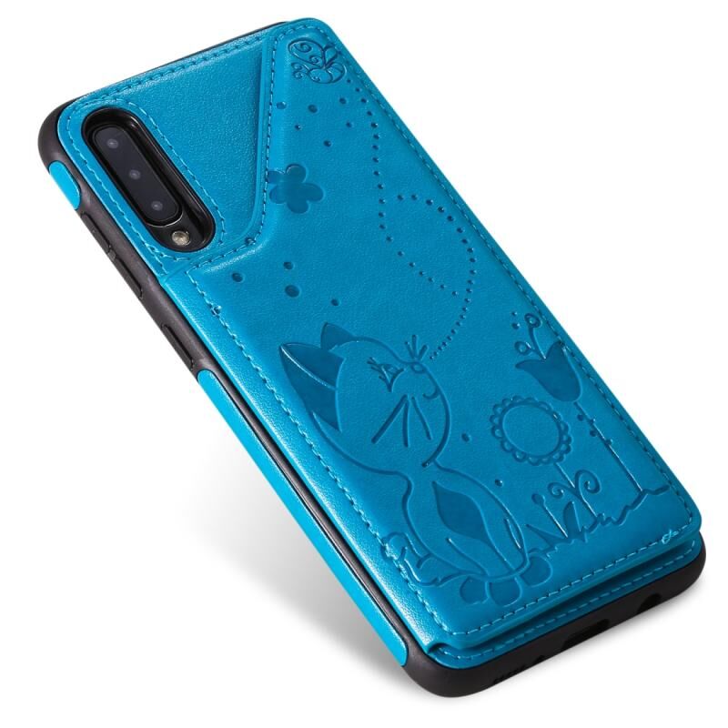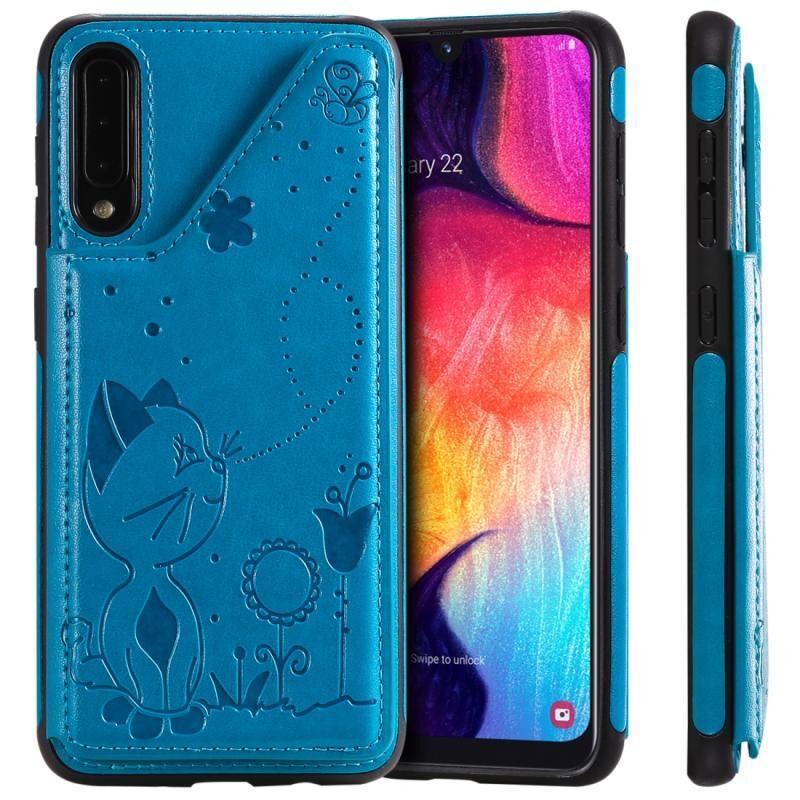 Για Galaxy A50 / A50s / A30s Θήκη Προστασίας με Ανάγλυφο Σχέδιο Cat Bee, Ανθεκτική στις Κραδασμούς με Θήκες για Κάρτες & Φωτογραφίες (Πράσινο)