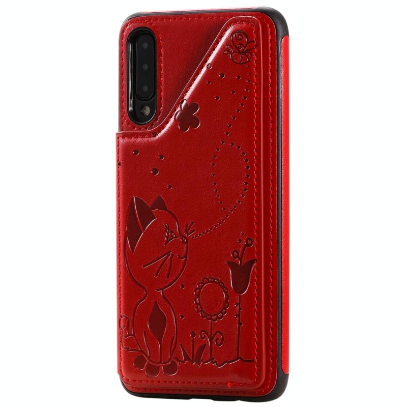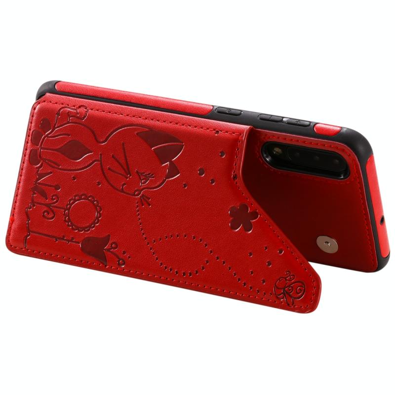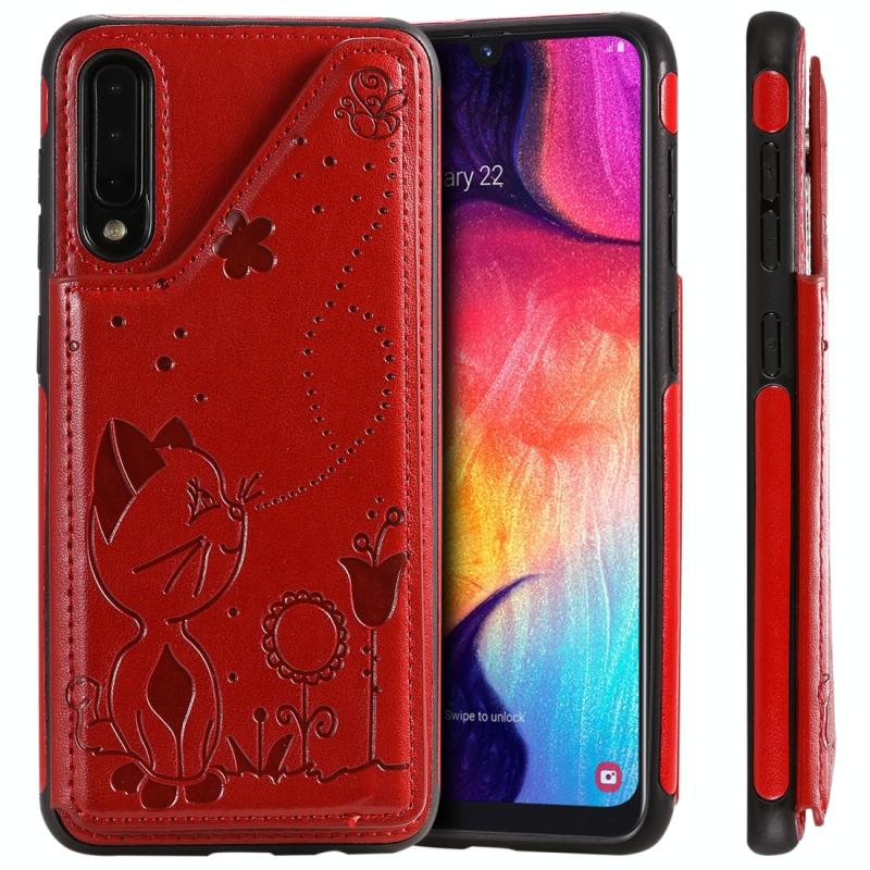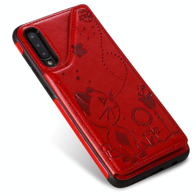 Για Galaxy A50 / A50s / A30s Θήκη Προστασίας με Ανάγλυφο Σχέδιο Cat Bee, Ανθεκτική στις Κραδασμούς με Θήκες για Κάρτες & Φωτογραφίες (Κόκκινο)