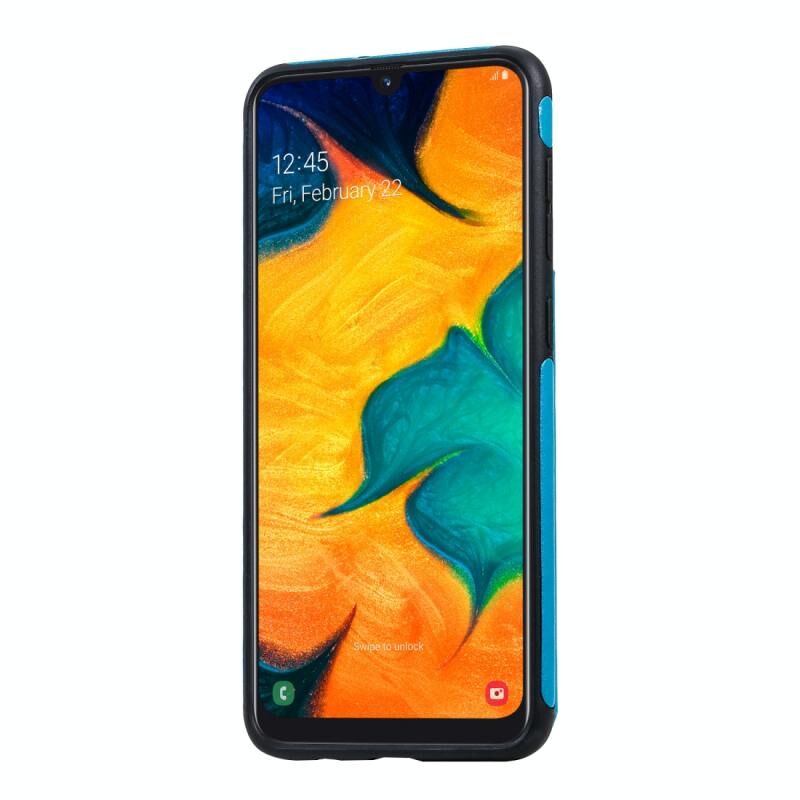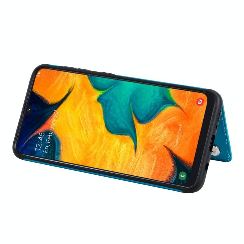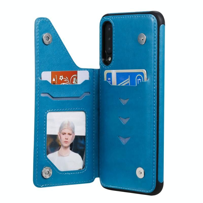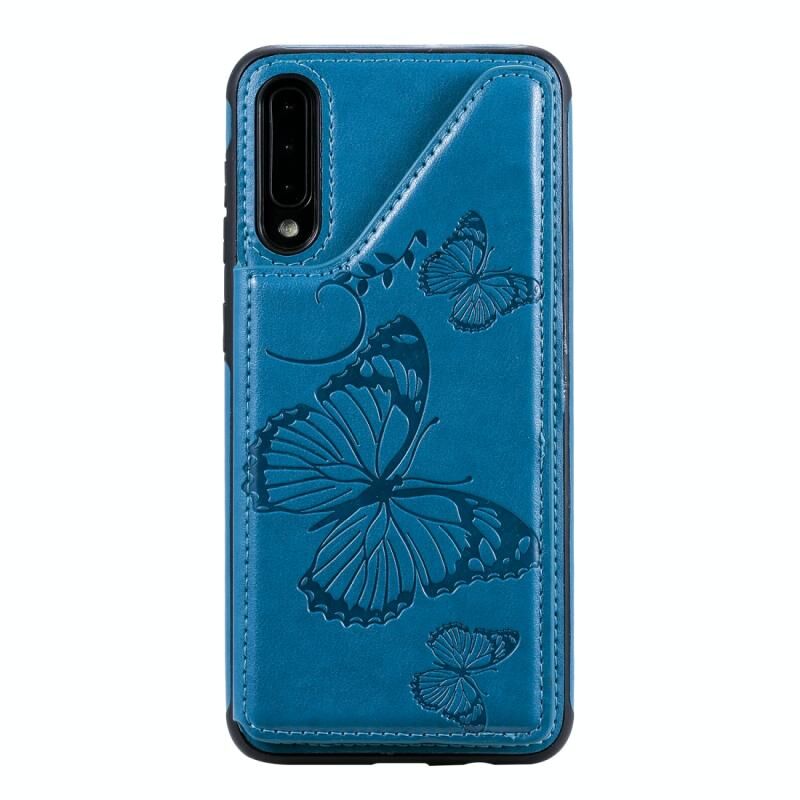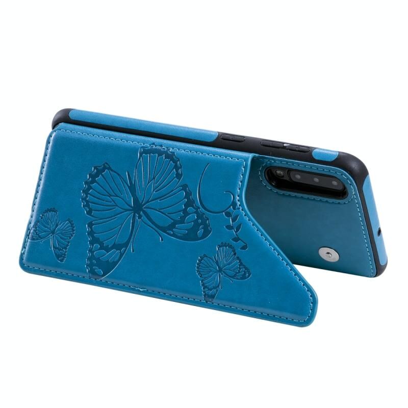 For Galaxy A50 Butterfly Embossing Pattern Shockproof Protective Case with Holder & Card Slots & Photo Frame(Blue)