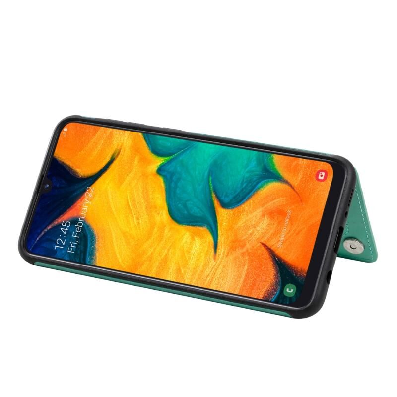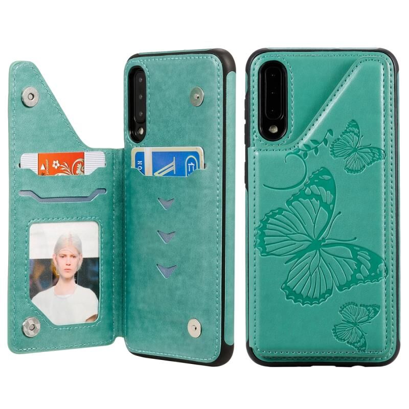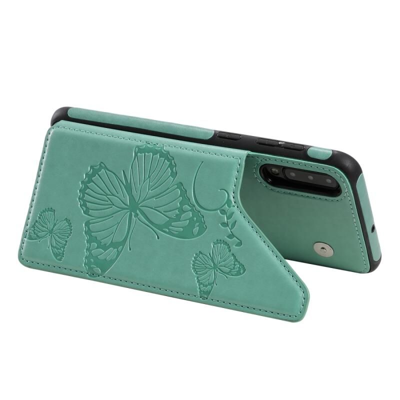For Galaxy A50 Butterfly Embossing Pattern Shockproof Protective Case with Holder & Card Slots & Photo Frame(Green)