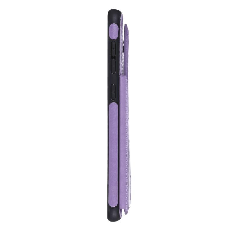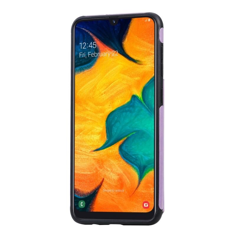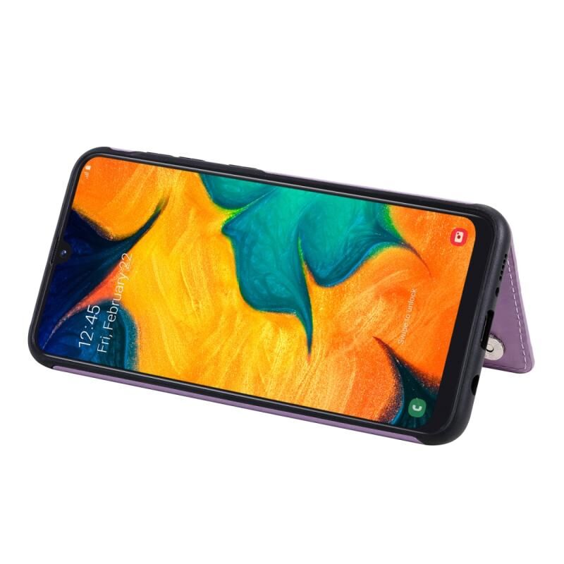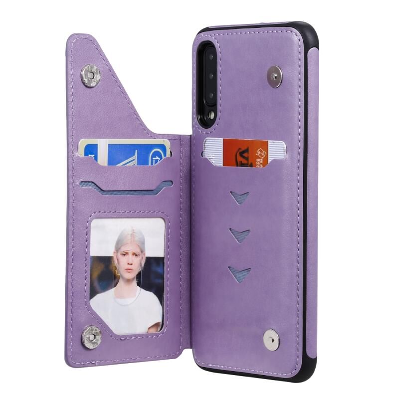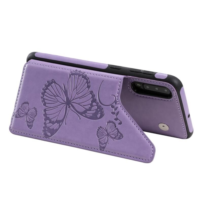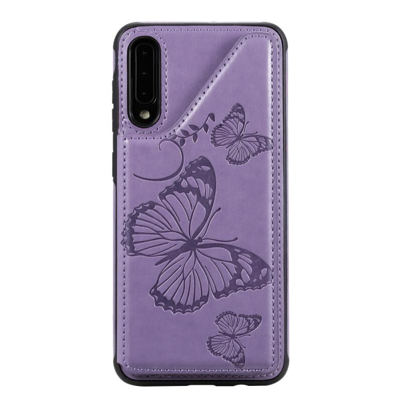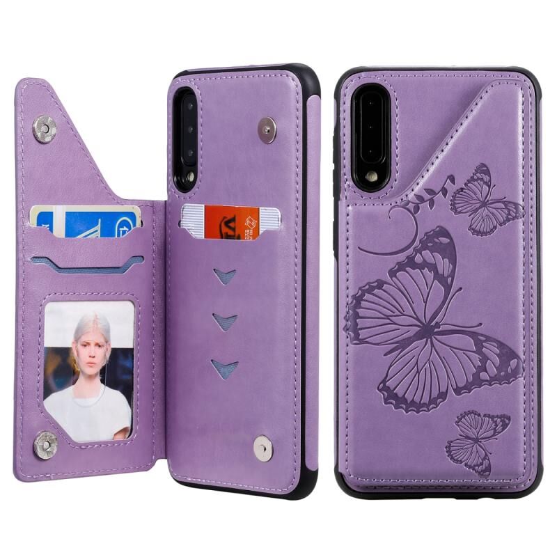 For Galaxy A50 Butterfly Embossing Pattern Shockproof Protective Case with Holder & Card Slots & Photo Frame(Purple)