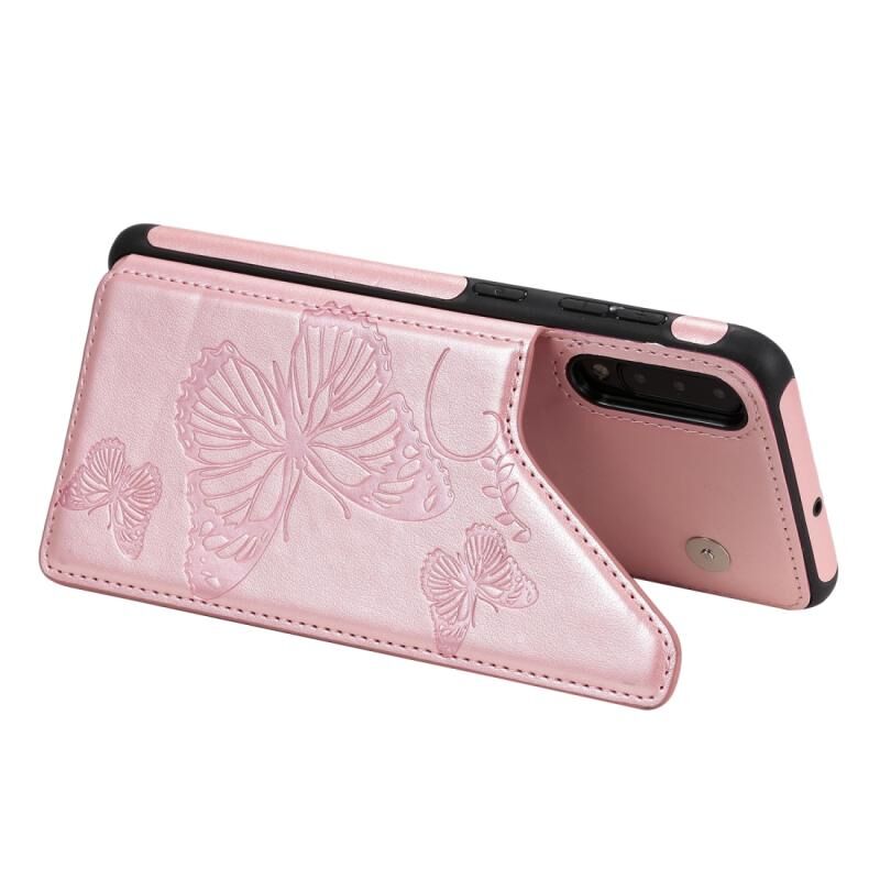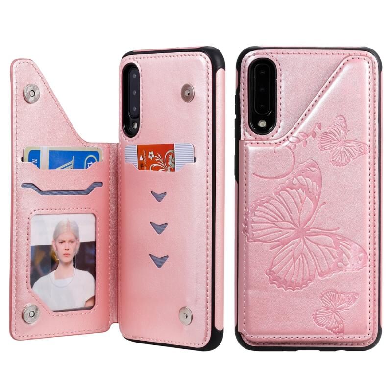 For Galaxy A50 Butterfly Embossing Pattern Shockproof Protective Case with Holder & Card Slots & Photo Frame(Rose Gold)