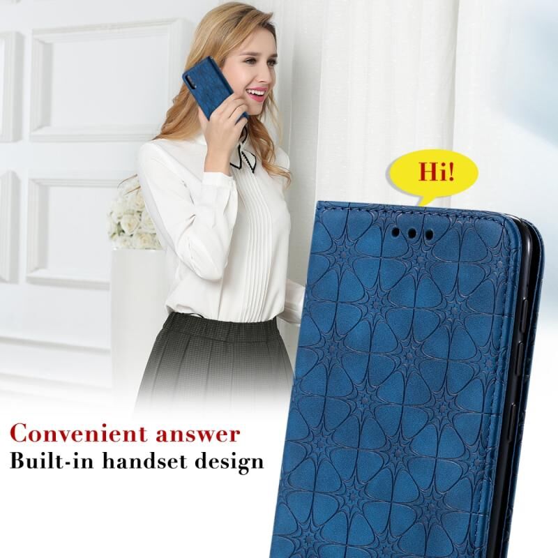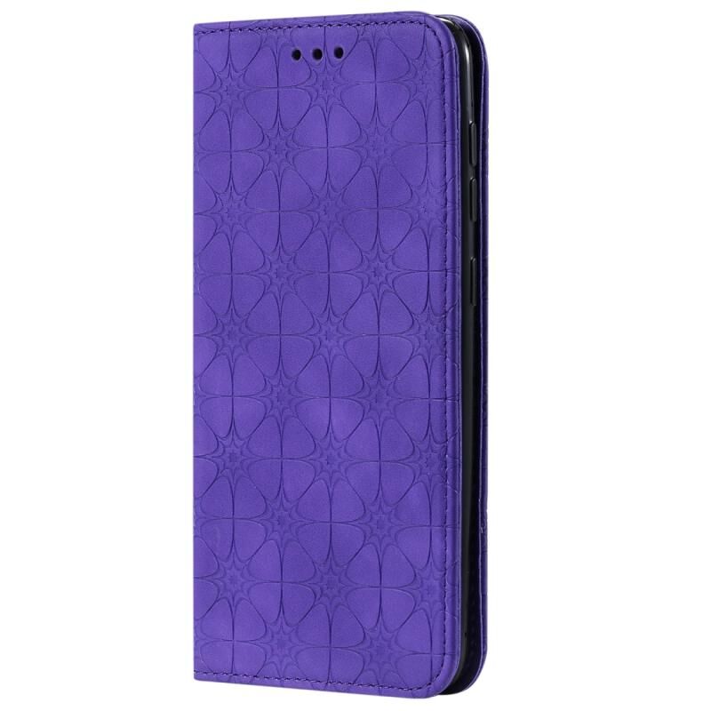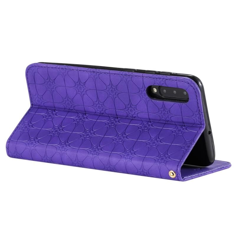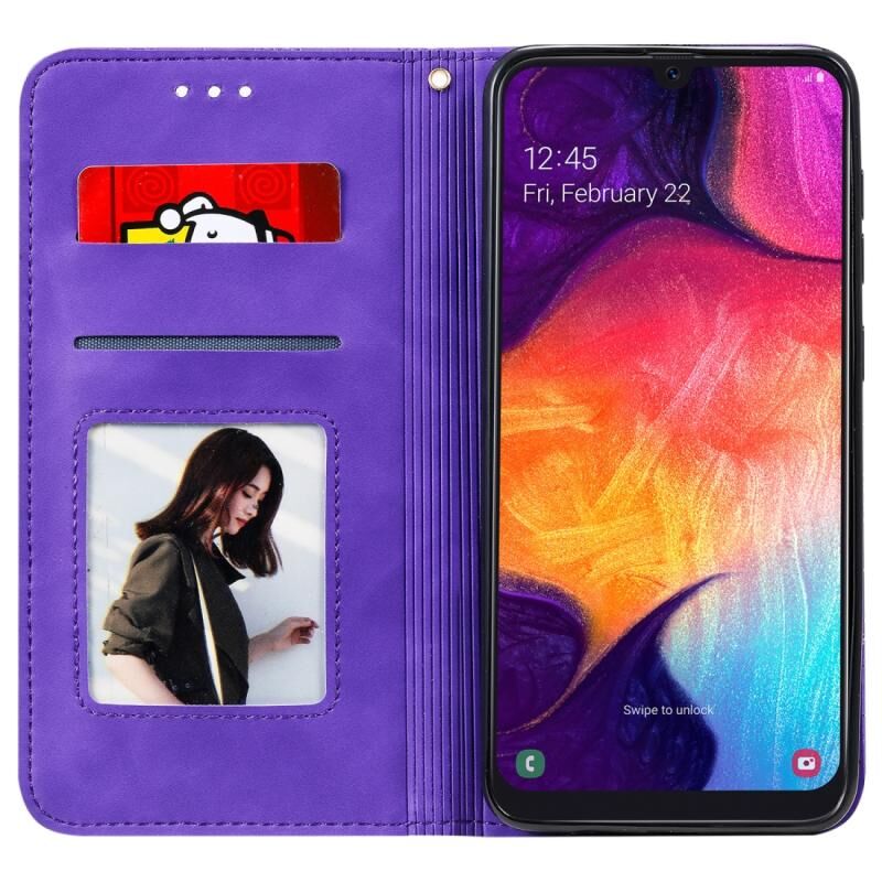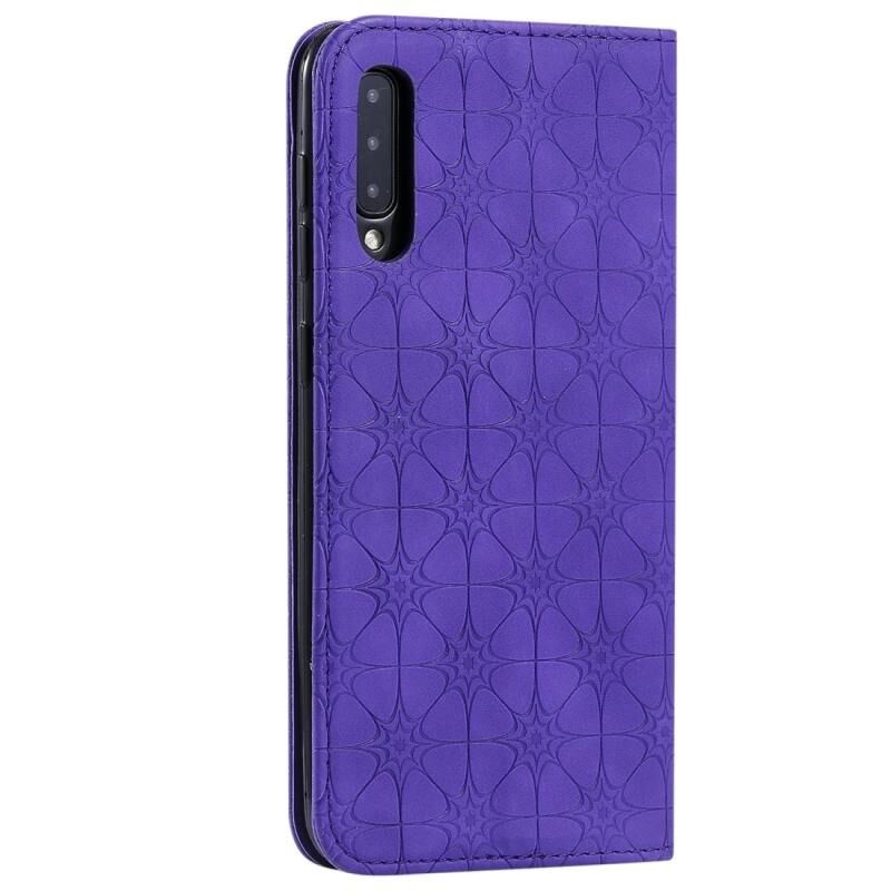 Θήκη δέρματος με μαγνητικό κλείσιμο, οριζόντια, με ανάγλυφο σχέδιο λουλουδιών για Galaxy A50, με βάση στήριξης & θήκες για κάρτες (Μωβ)