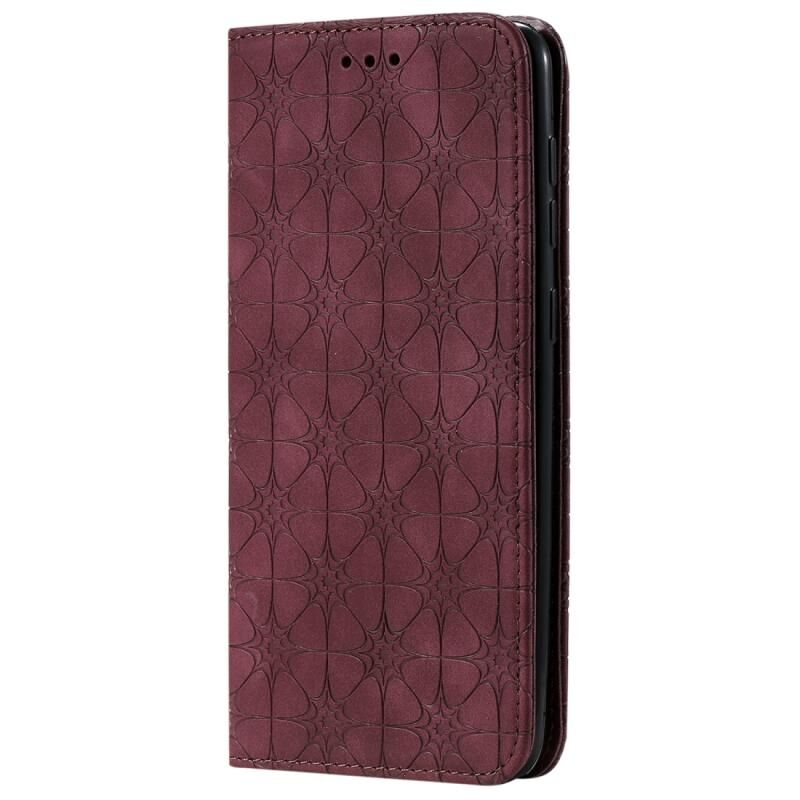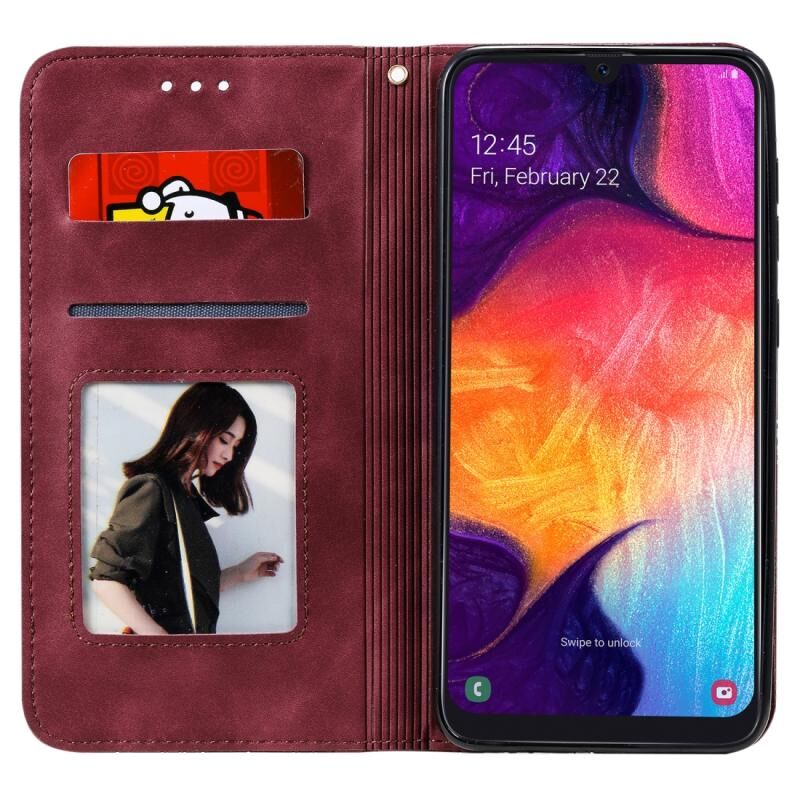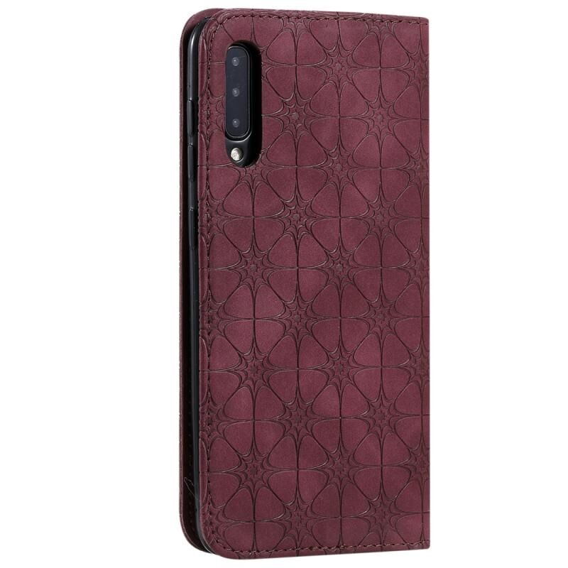Θήκη δέρματος με μαγνητικό κλείσιμο, οριζόντια, με ανάγλυφο σχέδιο λουλουδιών για Galaxy A50, με βάση και θήκες για κάρτες (Σκούρο Μπλε)