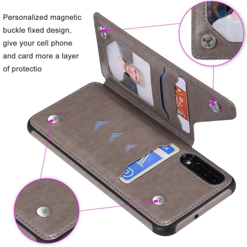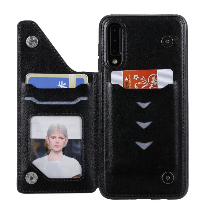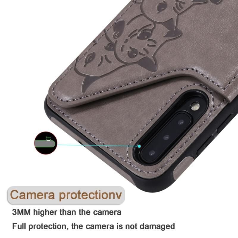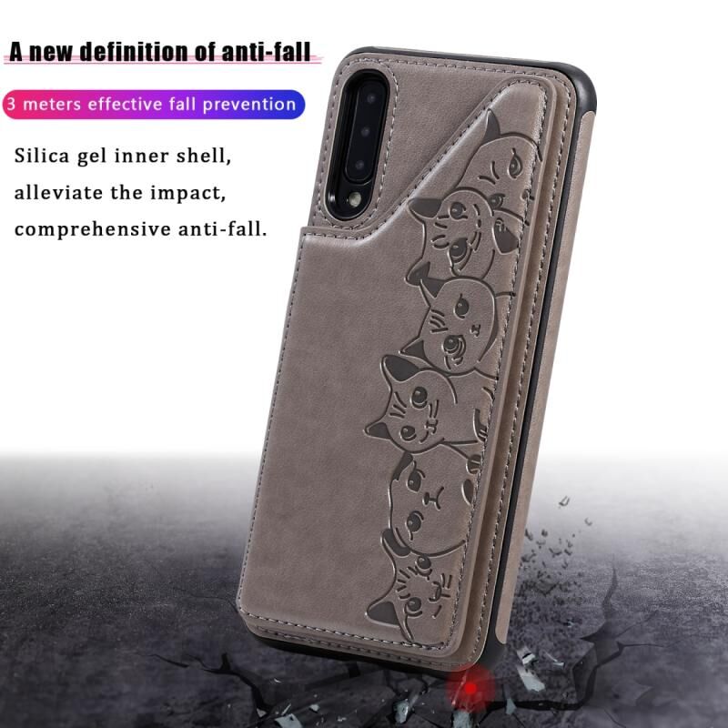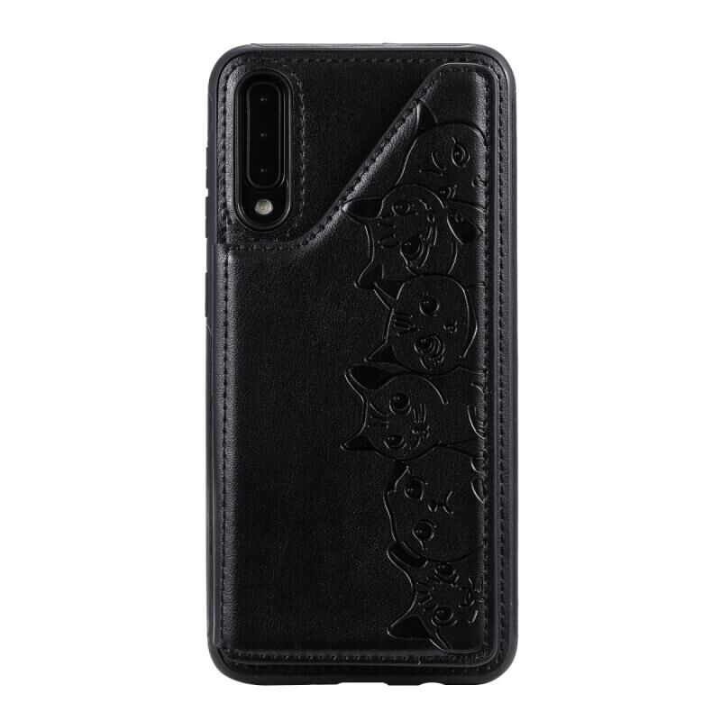 Θήκη προστασίας με ανάγλυφο σχέδιο έξι γατών για Galaxy A50 με βάση στήριξης & θήκες καρτών & κορνίζα φωτογραφιών (Μαύρο)