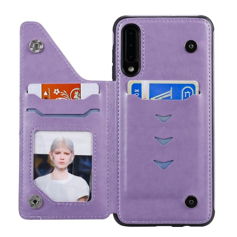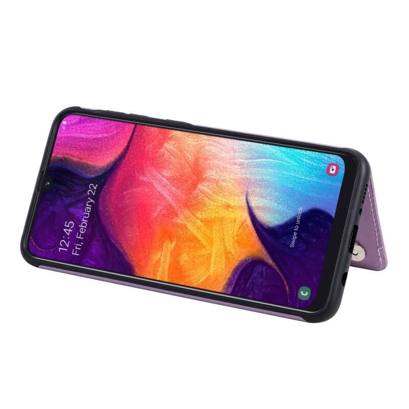 Θήκη προστασίας με ανάγλυφο σχέδιο έξι γατών για Galaxy A50 με βάση στήριξης & θήκες καρτών & κορνίζα φωτογραφιών (Μωβ)