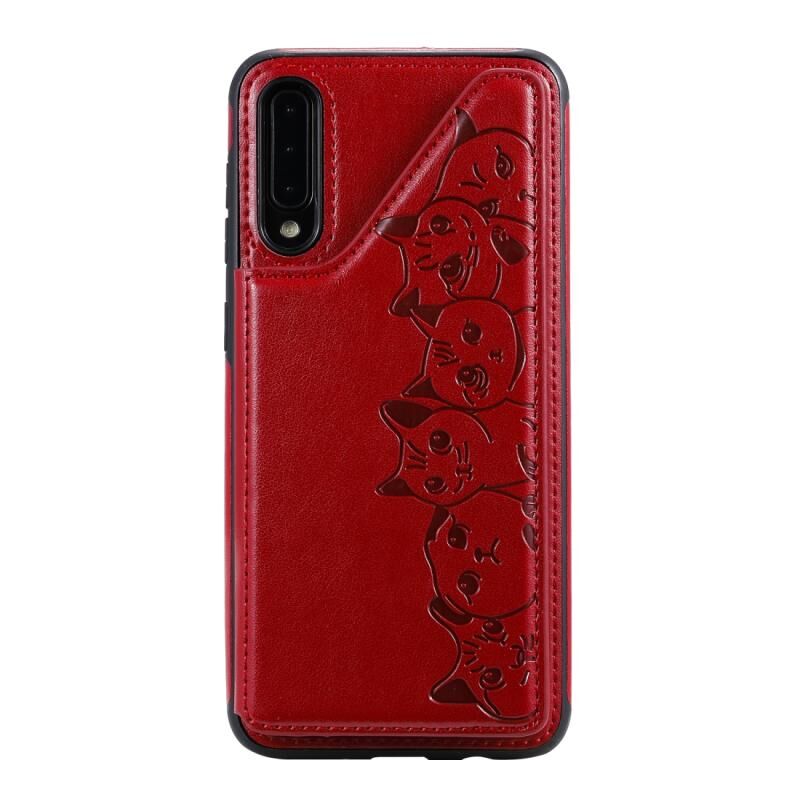 Θήκη προστασίας με ανάγλυφο σχέδιο έξι γατών για Galaxy A50 με βάση στήριξης & θήκες καρτών & κορνίζα φωτογραφιών (Κόκκινο)