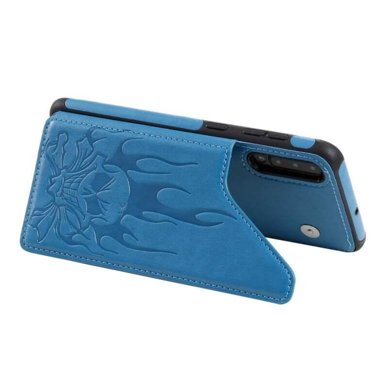 Θήκη προστασίας με ανάγλυφο σχέδιο κρανίου, αντικραδασμική για Galaxy A50 με βάση στήριξης & θήκες καρτών & πορτοφόλι (Μπλε)