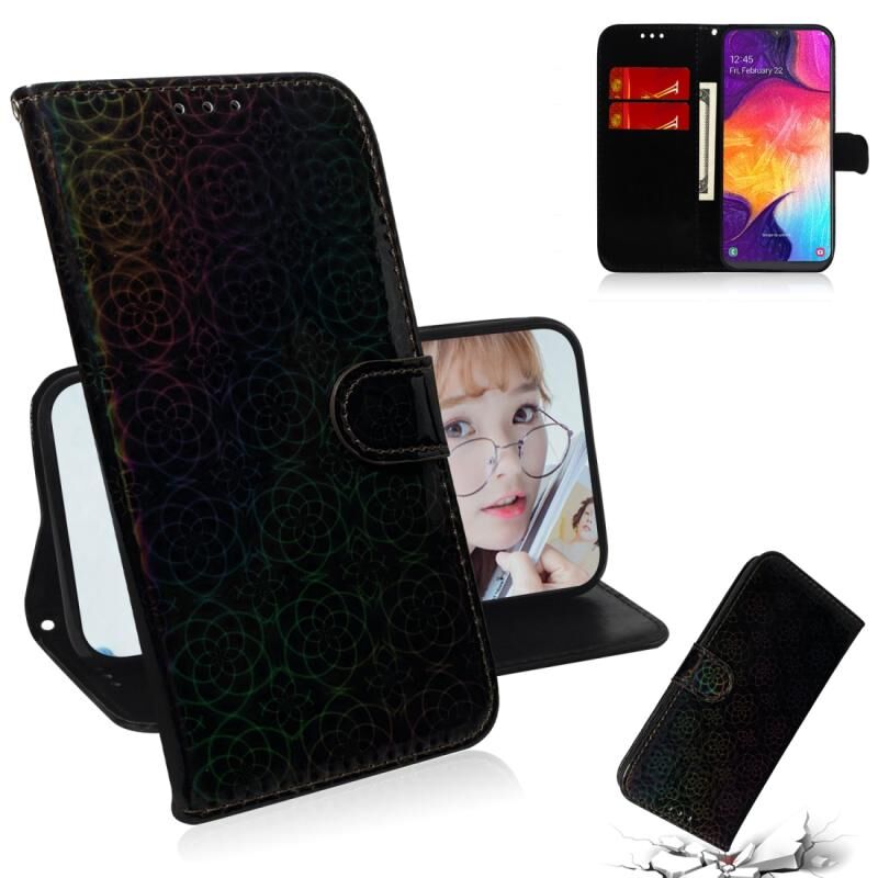 Θήκη για Galaxy A50, μονόχρωμη, πολύχρωμη, με μαγνητικό κούμπωμα, οριζόντια, από δερματίνη PU, με βάση στήριξης & θήκες για κάρτες & πορτοφόλι & κορδόνι (Μαύρο)
