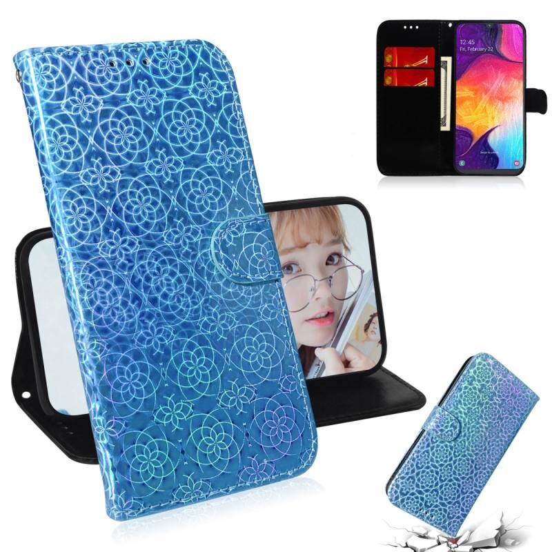 Θήκη για Galaxy A50, μονόχρωμη, πολύχρωμη, με μαγνητικό κούμπωμα, οριζόντια, από δερματίνη PU, με βάση στήριξης & θήκες για κάρτες & πορτοφόλι & κορδόνι (Μπλε)