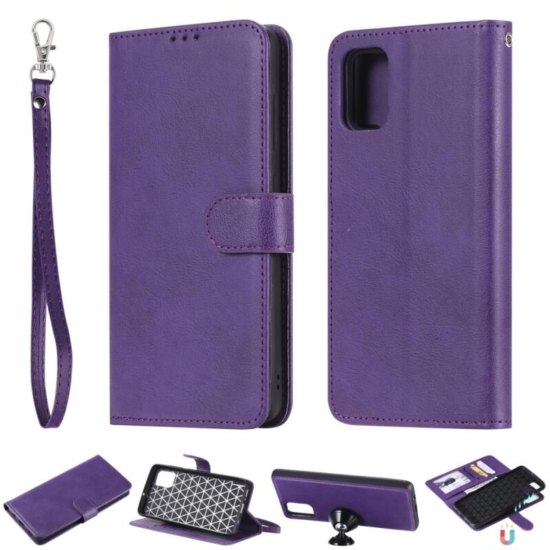 Για Galaxy A51 2 σε 1 Αμιγές χρώμα Αποσπώμενη PU δερμάτινη θήκη με υποδοχές καρτών & μαγνητική θήκη & πλαίσιο φωτογραφιών & πορτοφόλι & λουράκι (Μωβ)