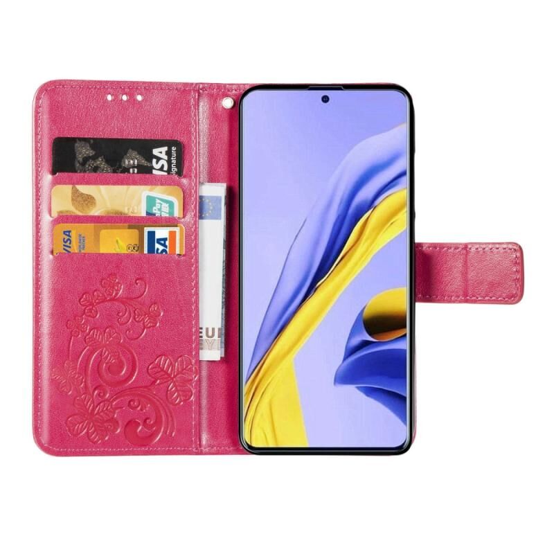 Για Galaxy A51 5G Θήκη Προστασίας Κινητού Δέρμα με Κούμπωμα Τριφύλλι, Λουράκι, Θήκη Καρτών, Πορτοφόλι & Λειτουργία Στήριξης (ματζέντα)