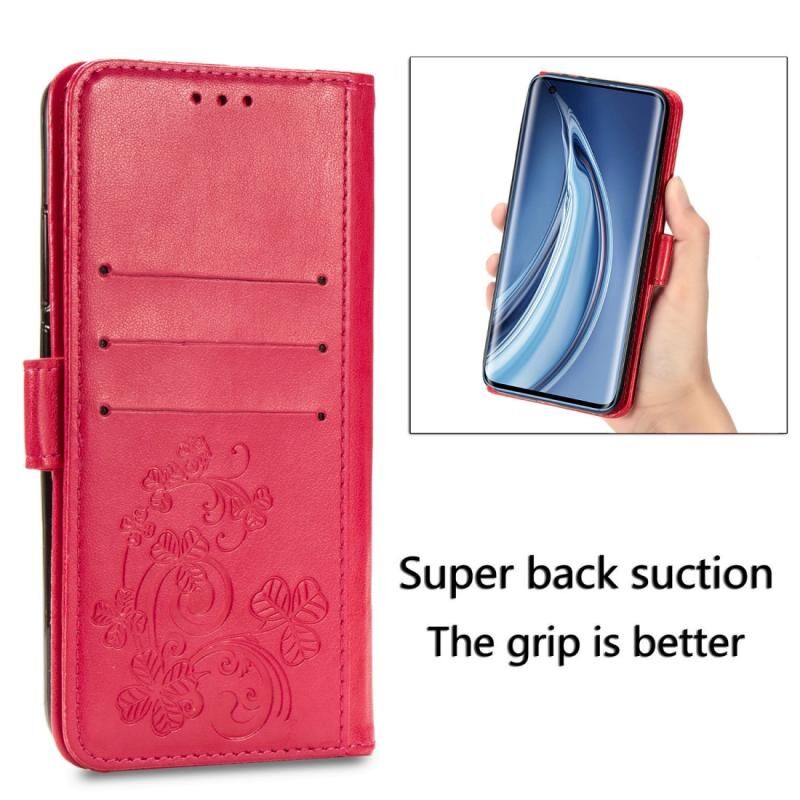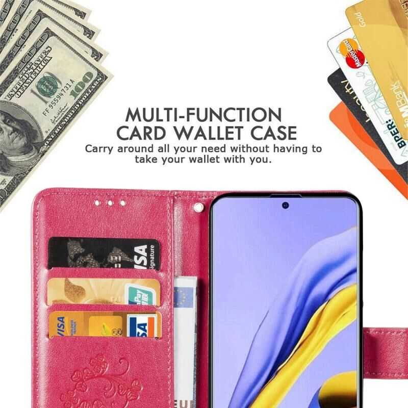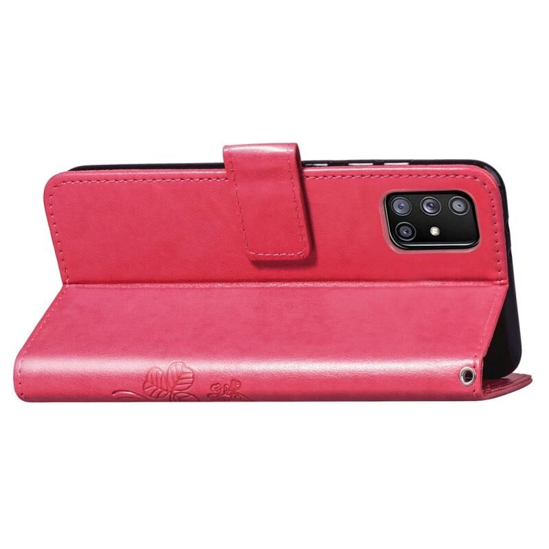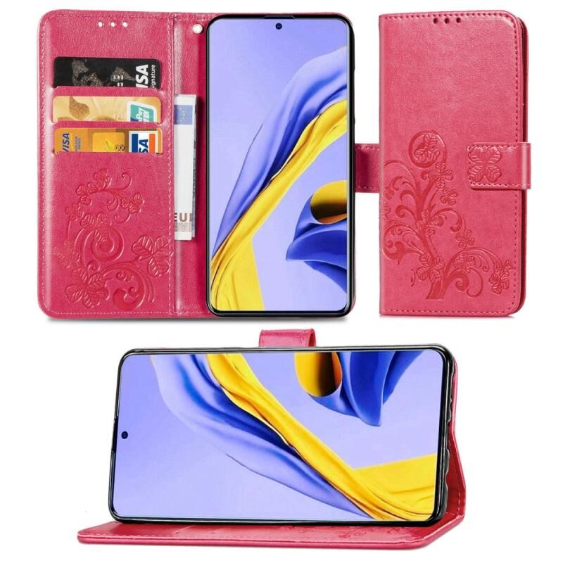 Θήκη δέρματος με σχέδιο πιεσμένων λουλουδιών τριφυλλιού για Galaxy A51 5G με βάση στήριξης & υποδοχές καρτών & πορτοφόλι & λουρί χειρός (ρόδινο)