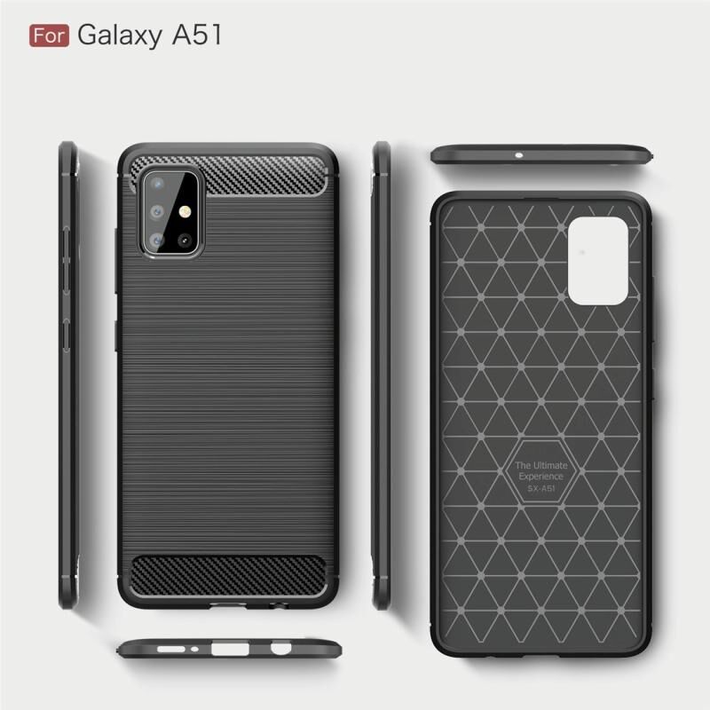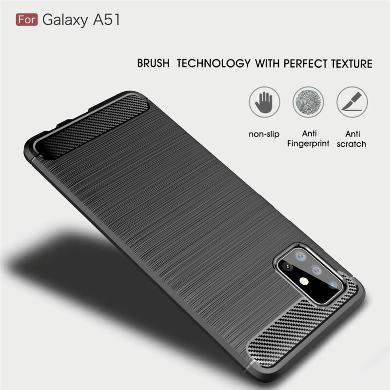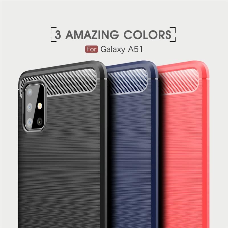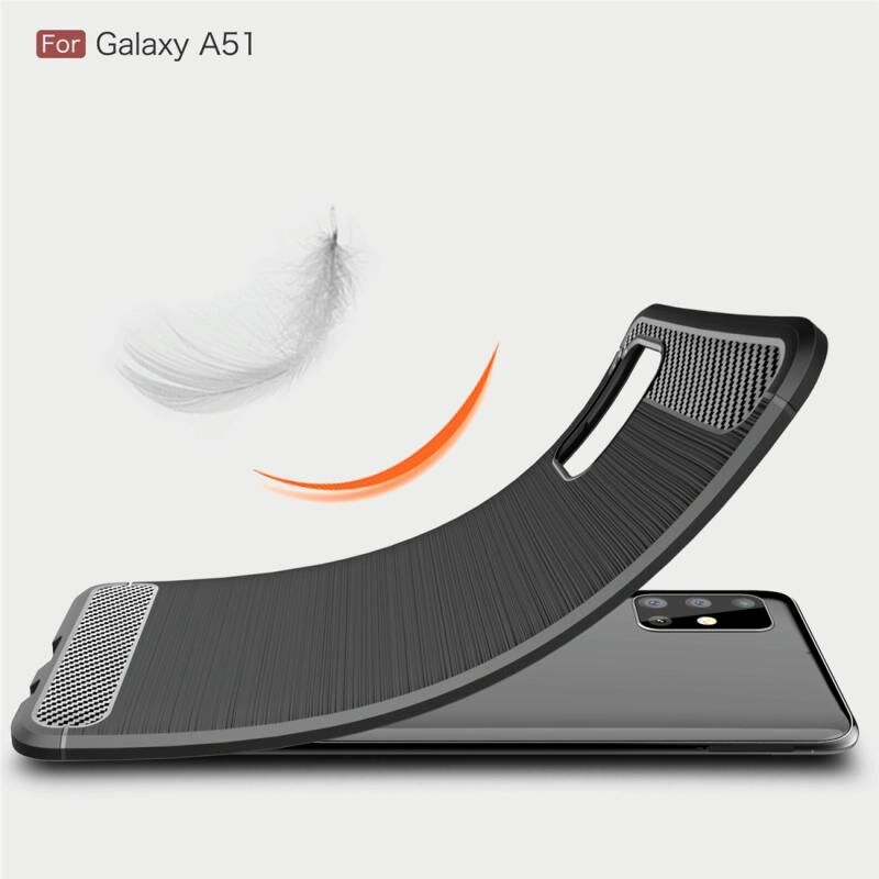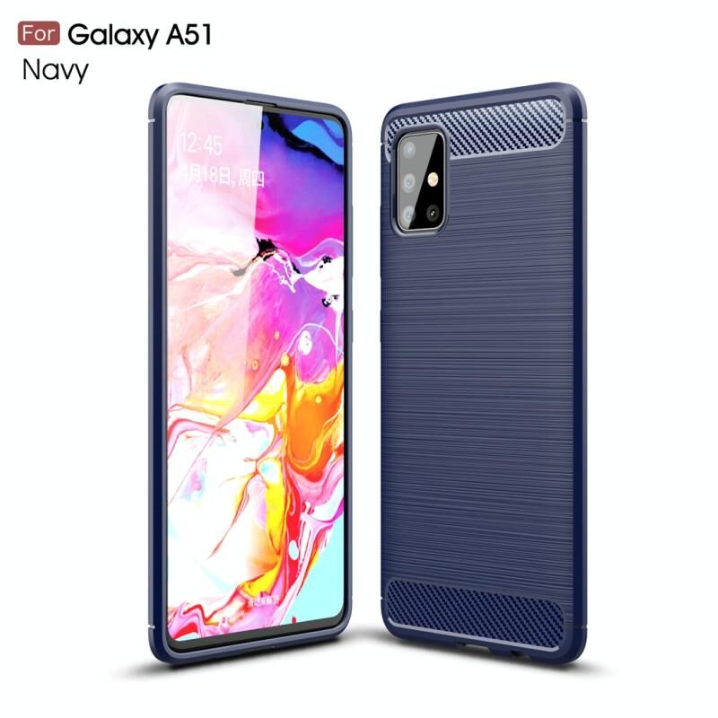 Για Galaxy A51 Θήκη TPU με βουρτσισμένη υφή ανθρακονημάτων (μπλε)