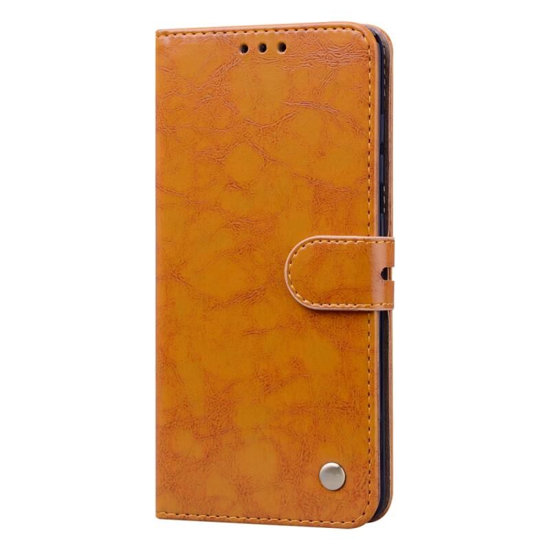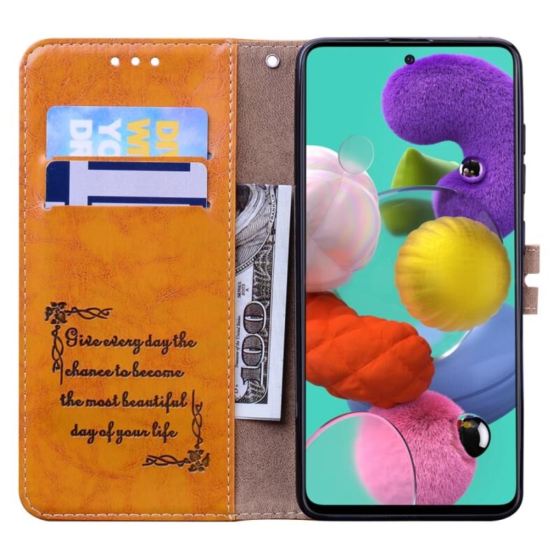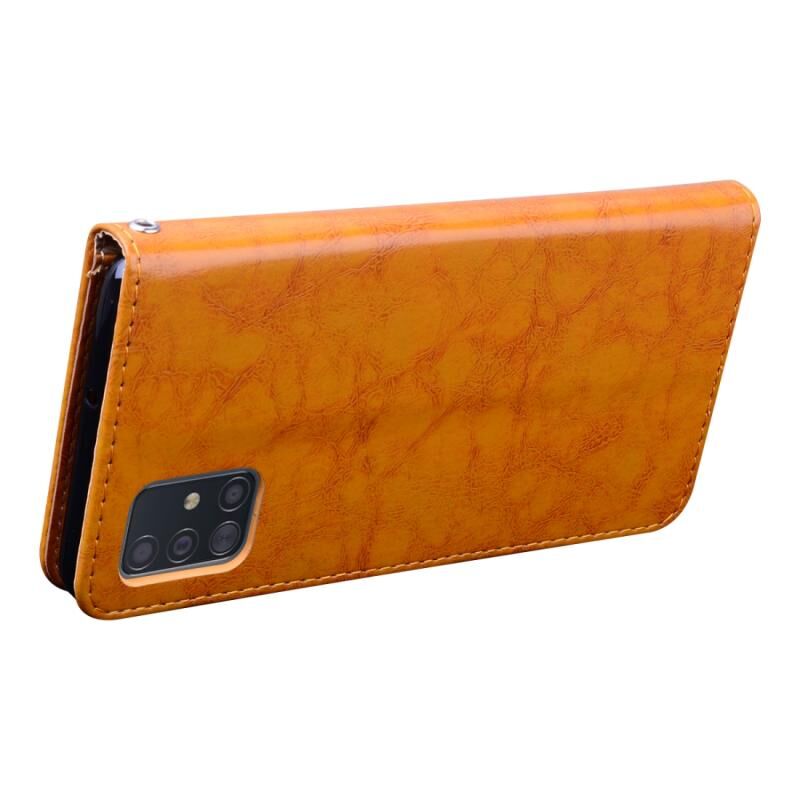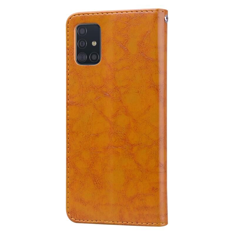Για Galaxy A51 Business Style Oil Wax Texture Horizontal Flip Leather Case, με θήκη & υποδοχές για κάρτες & πορτοφόλι (Καφέ)